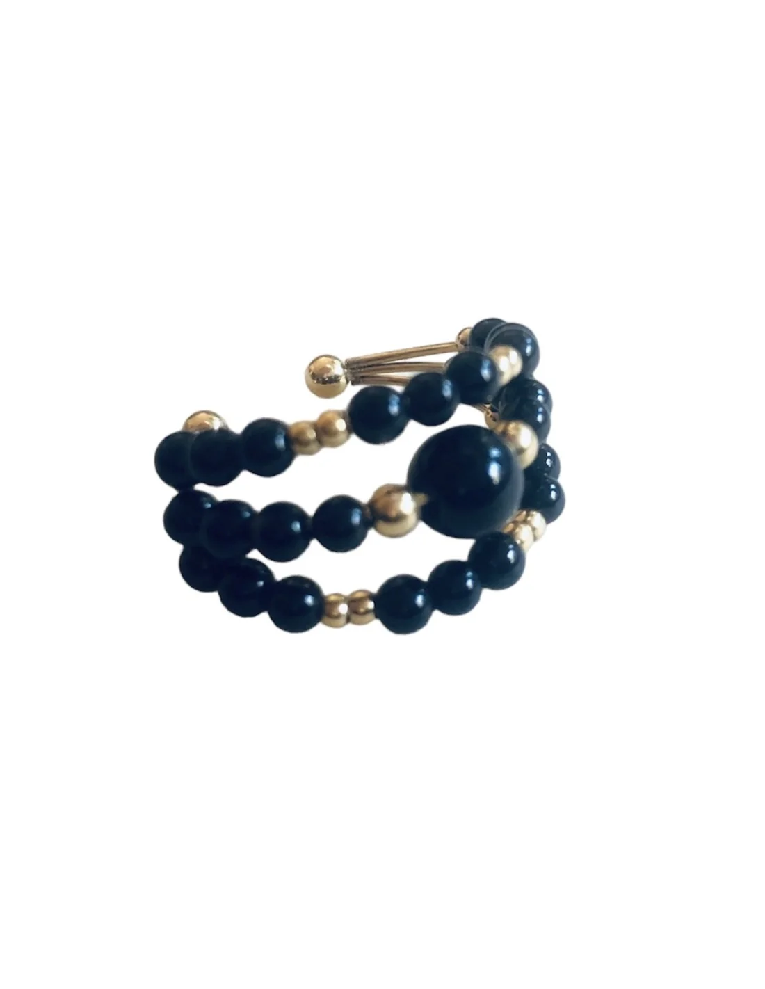 Οι μαύρες πέτρες προσφέρουν μια μυστηριώδη αίσθηση, ενώ η ελαφριά υφή του ατσαλιού διασφαλίζει άνετη και καθημερινή χρήση.