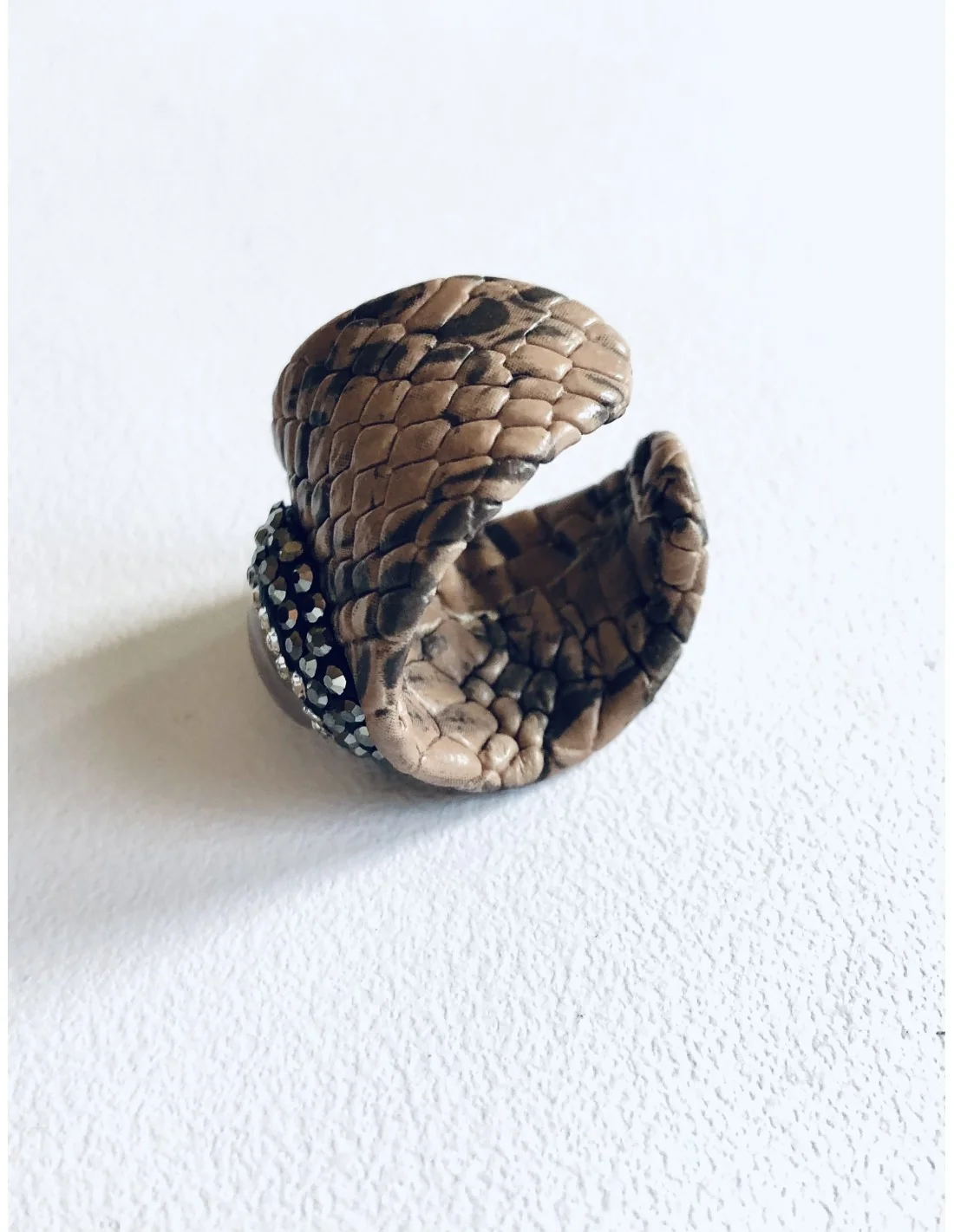 Ανακαλύψτε το γυναικείο δαχτυλίδι "Ellis", μια μοναδική δημιουργία από τεχνόδερμα με εντυπωσιακή όψη φιδιού.
