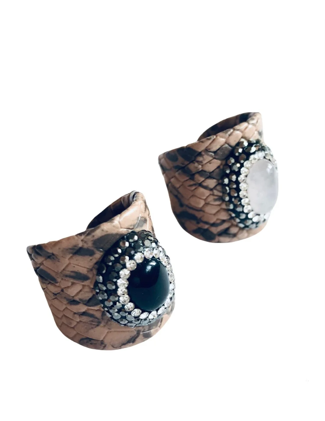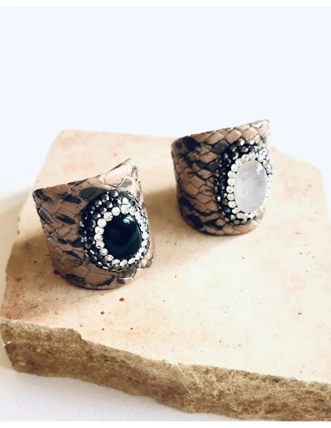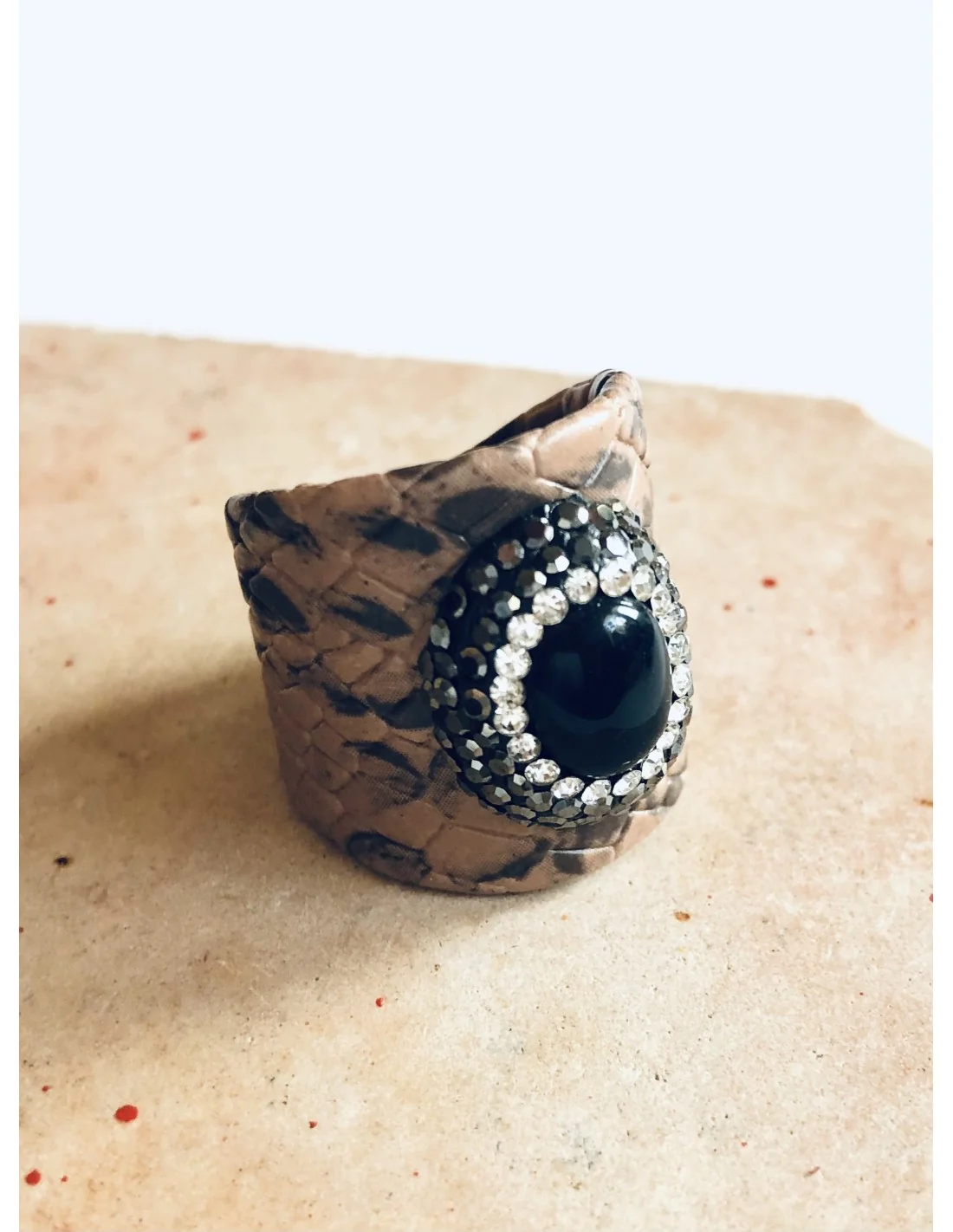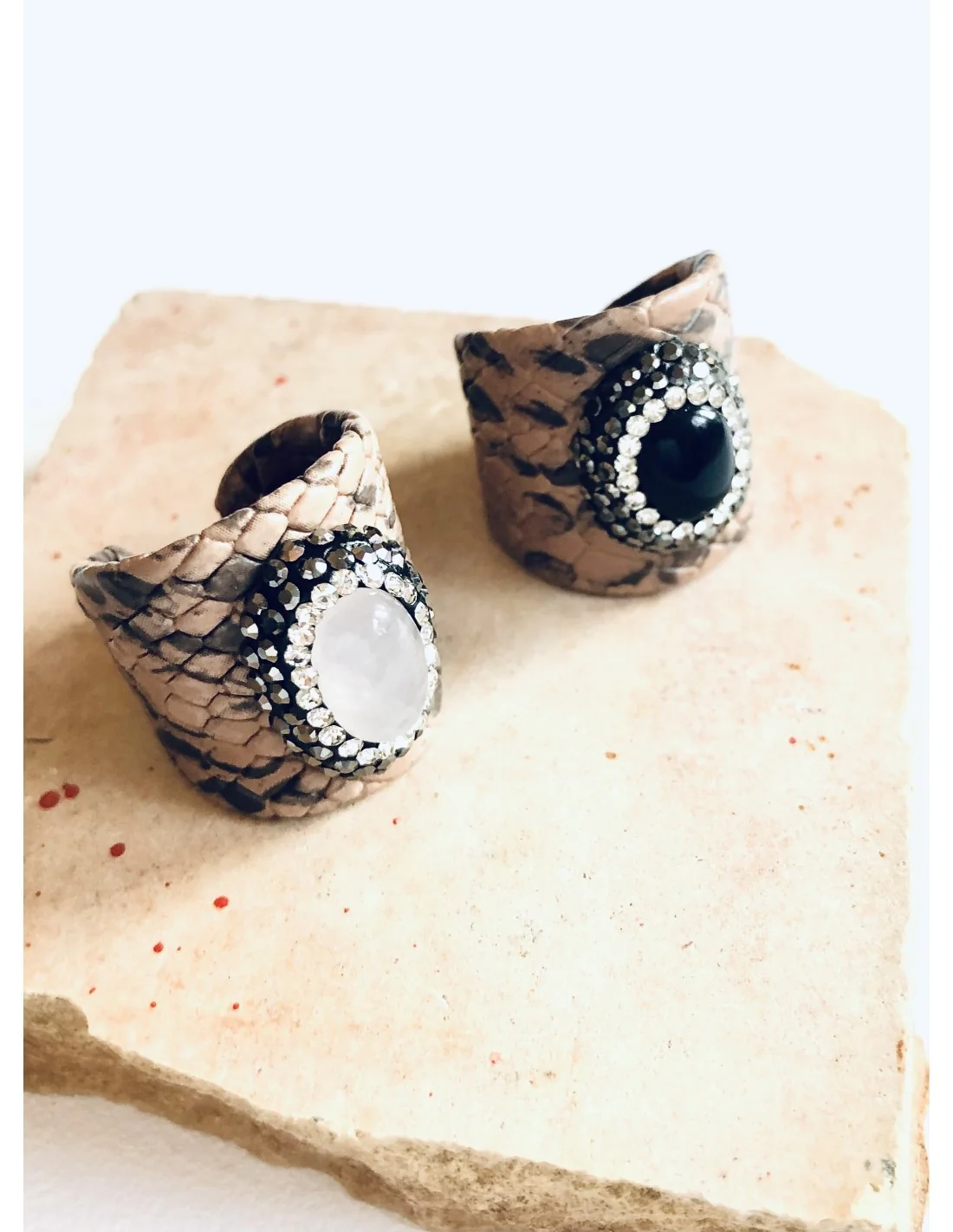 - Υλικό: Γυναικείο δαχτυλίδι από τεχνόδερμα σε όψη φιδιού με οβάλ πέτρα, εξασφαλίζοντας άνεση και στυλ.