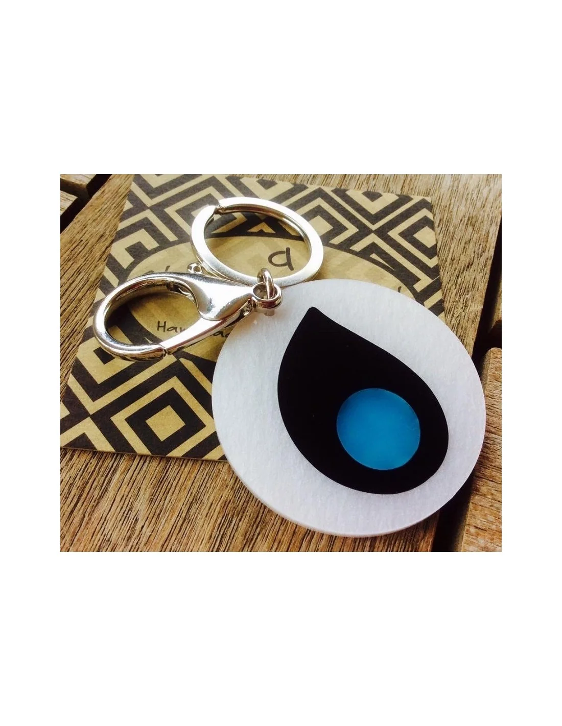 Ακρυλικό μπρελόκ μάτι με σχέδιο σταγόνα σε λευκό, μπλε και μαύρο με ασημί μεταλλικά στοιχεία