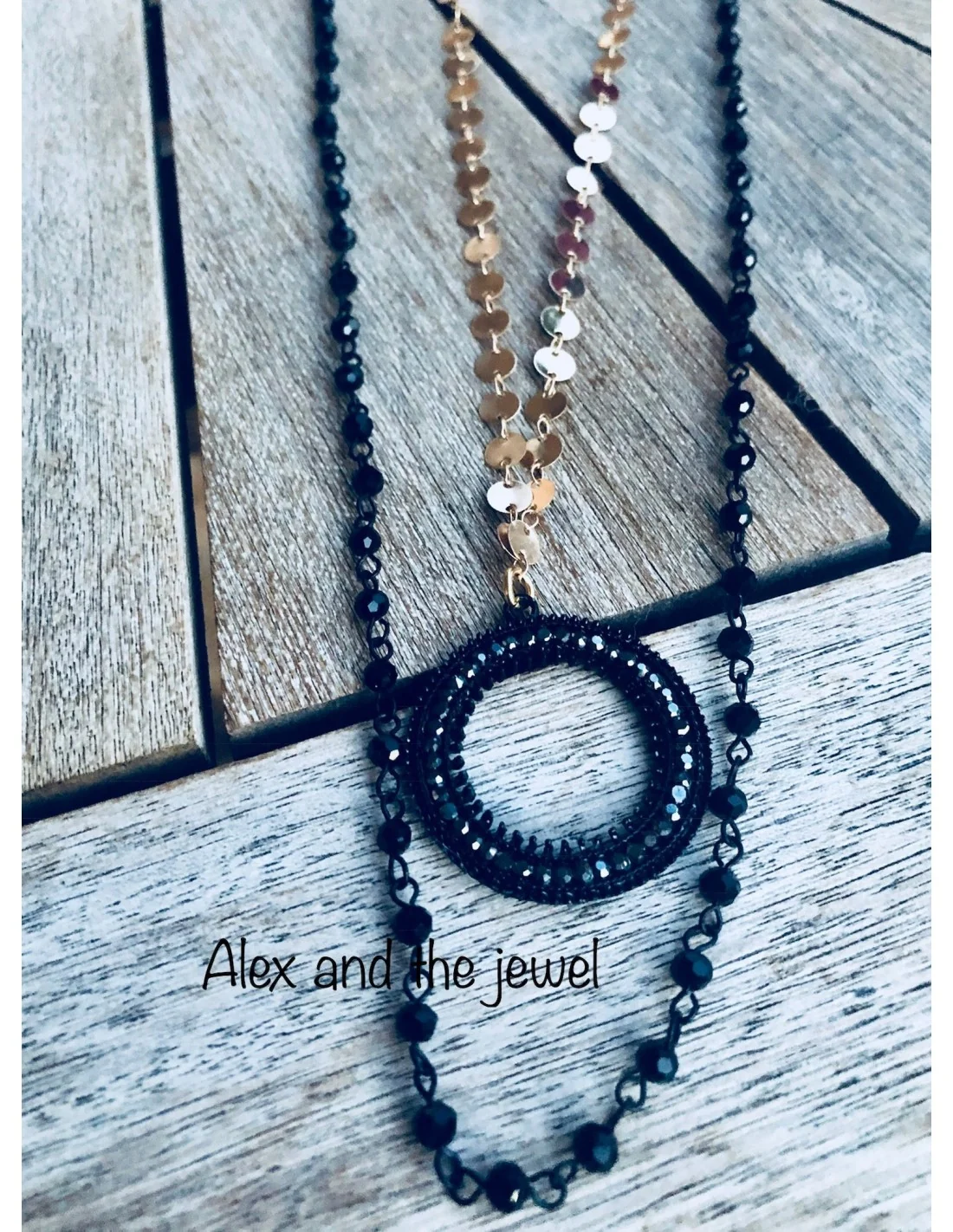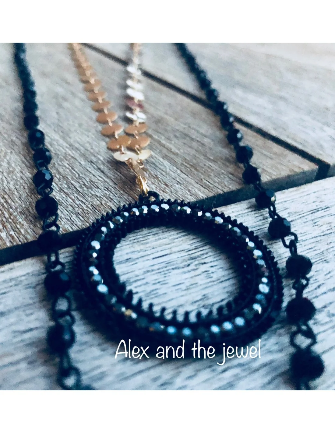 Διπλό κολιέ με ροζάριο και μαύρα κρύσταλλα "Aurelia"