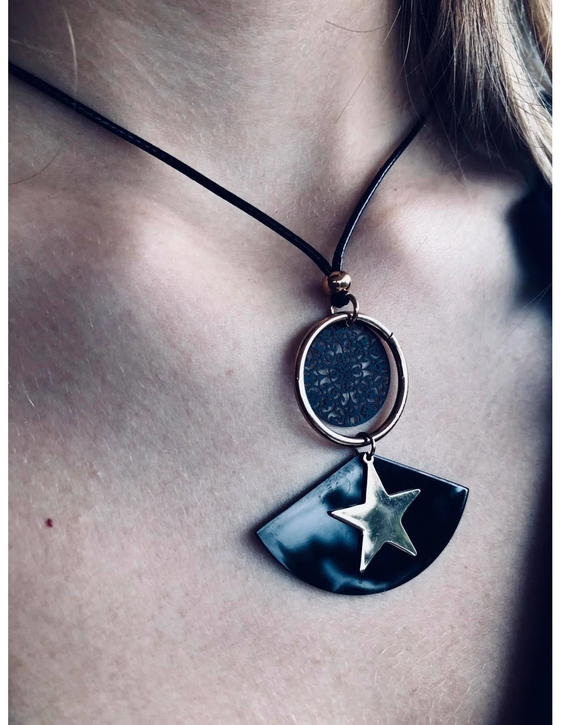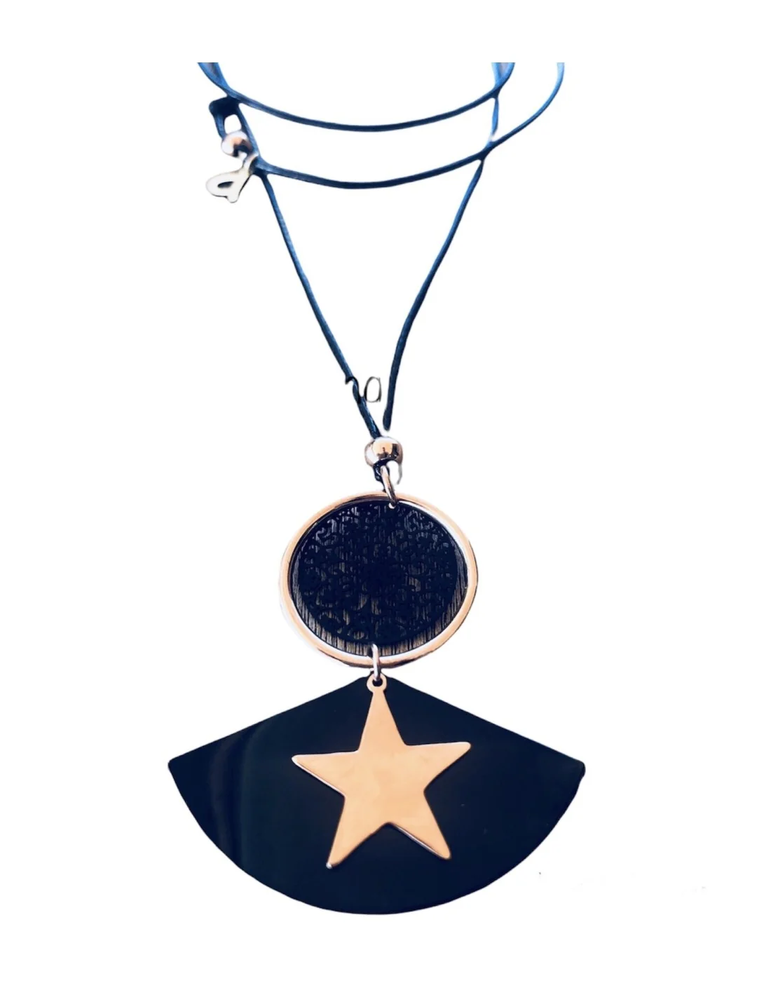 Κολιέ με στοιχείο από ατσάλι σε σχέδιο αστέρι και διάτρητος δίσκος φιλιγκρί σε στρογγυλό γυαλιστερό κορδόνι Cassiopeia