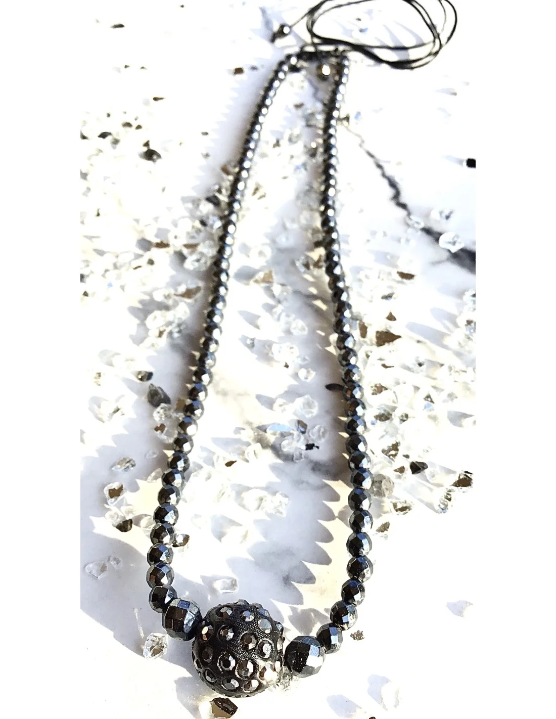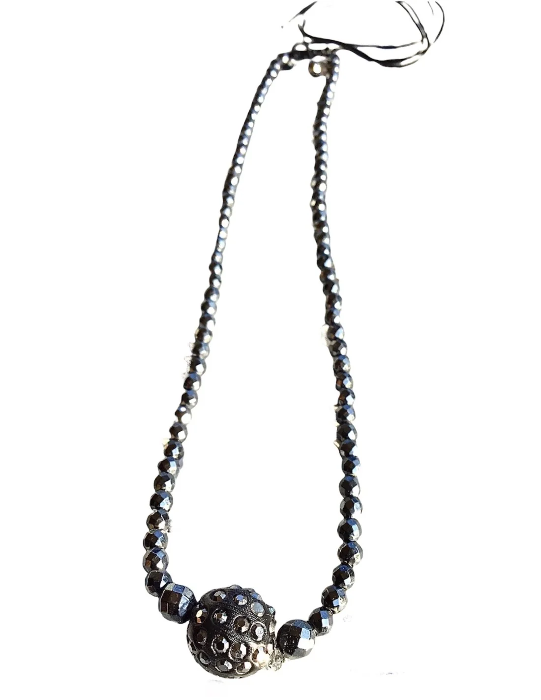 Χειροποίητο γυναικείο κολιέ με κεντρικό στοιχείο μπίλια από πέτρες Μαρκασίτη και πέτρες Αιματίτη "Driida"