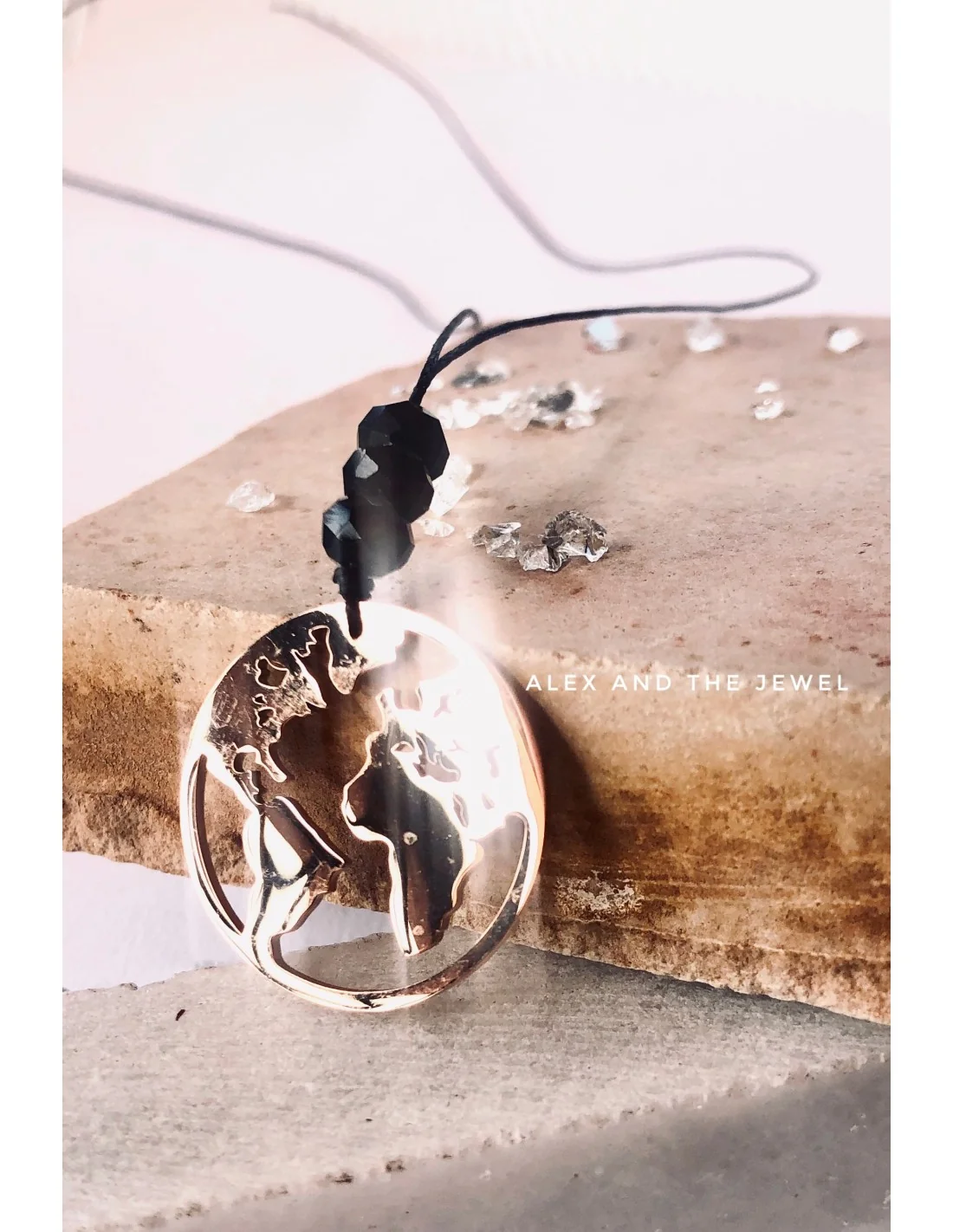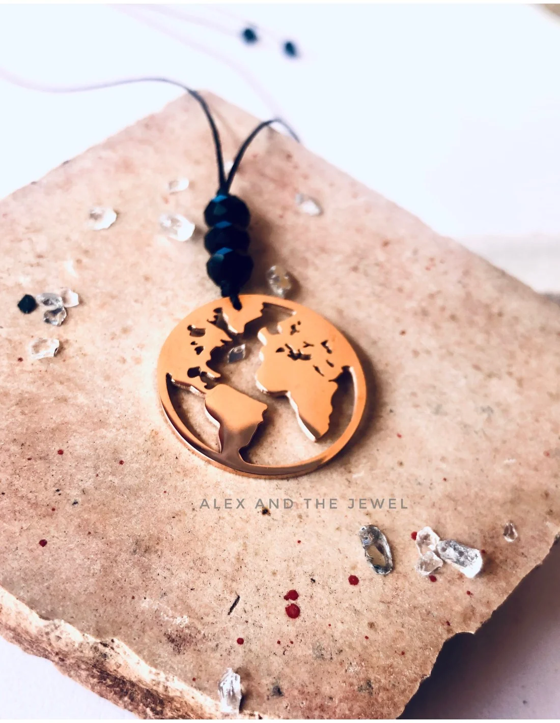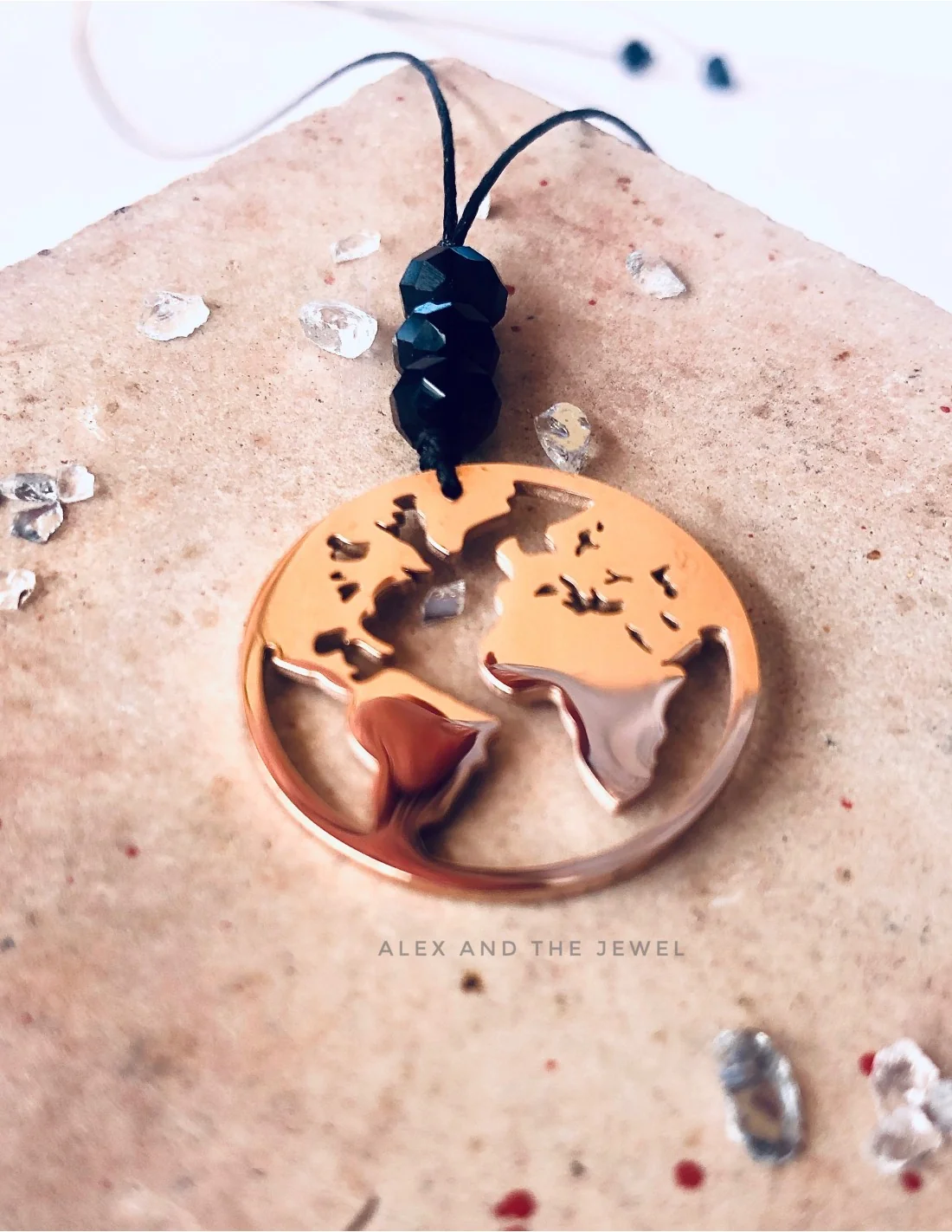 Χειροποίητο γυναικείο κολιέ από ατσάλι σε ροζ χρυσό σε σχέδιο γη με διακοσμητικά κρύσταλλα Τσεχίας "Cosmos"