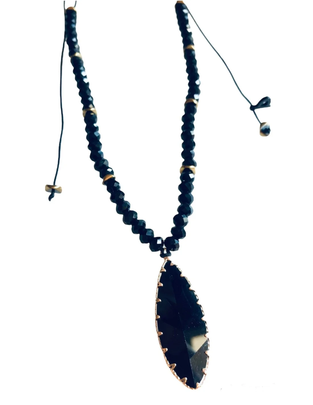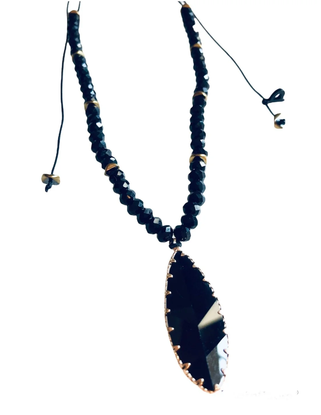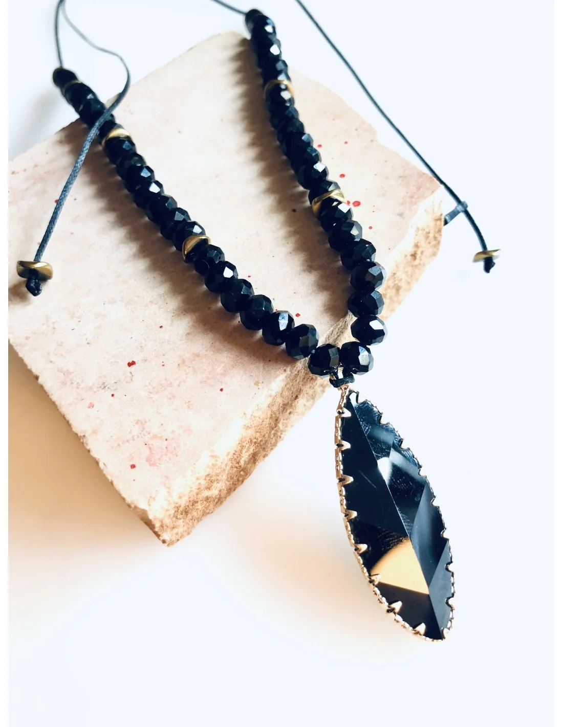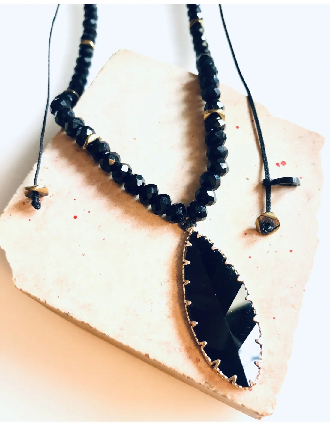 Χειροποίητο γυναικείο κολιέ με κεντρικό στοιχείο από μαύρο κρύσταλλο, διακοσμητικά μαύρα κρύσταλλα Magica