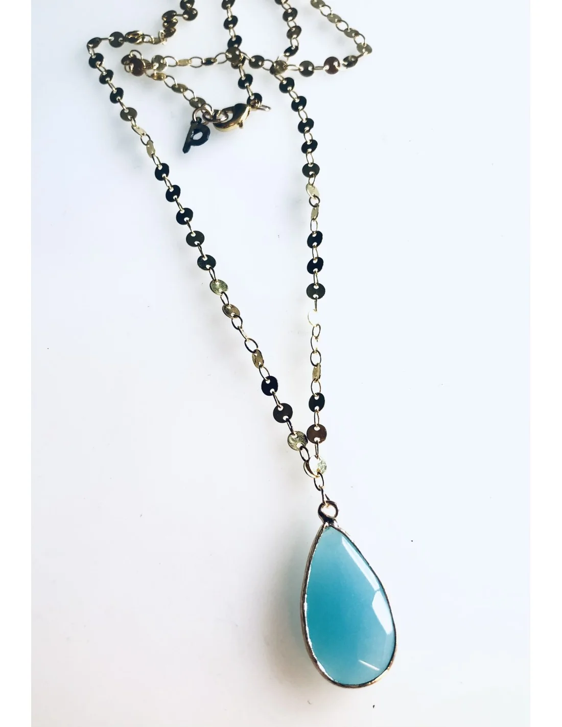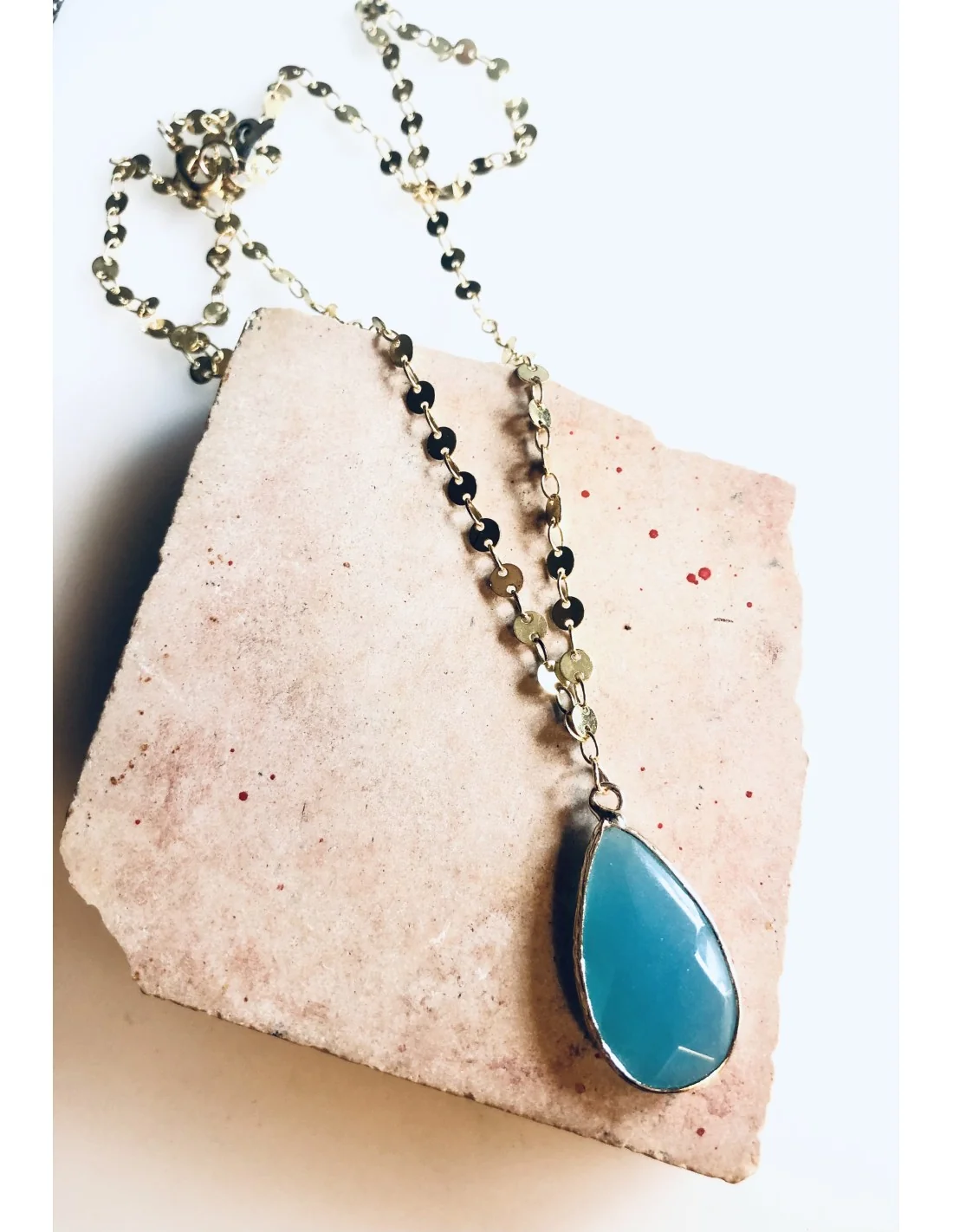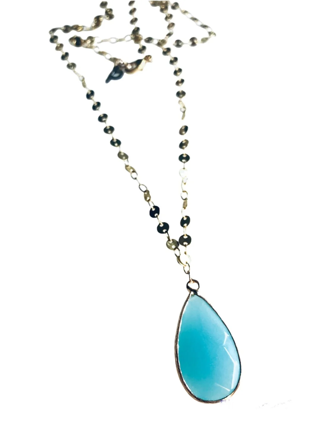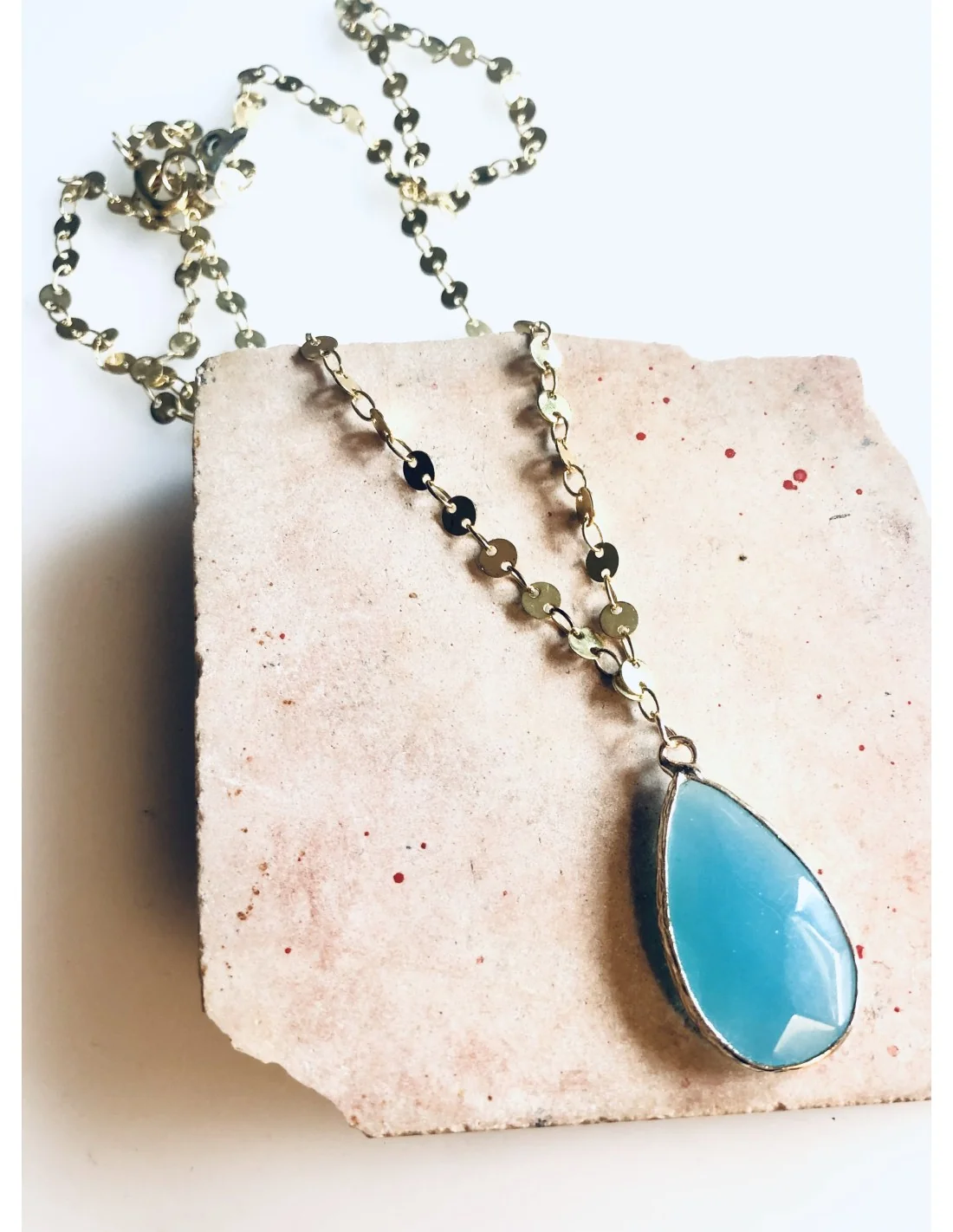 Χειροποίητο Γυναικείο Κολιέ με Κρύσταλλο Τιρκουάζ σε Περίτεχνη Επίχρυση Αλυσίδα από Ατσάλι "Clouds"