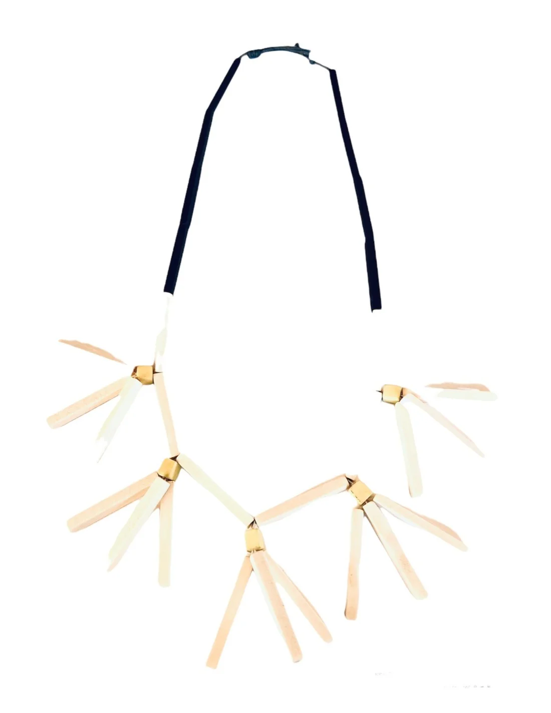 Χειροποίητο γυναικείο κολιέ φτιαγμένο στο χέρι από επεξεργασμένο ξύλο σε μαύρο και μπεζ με έντονη boho διάθεση.