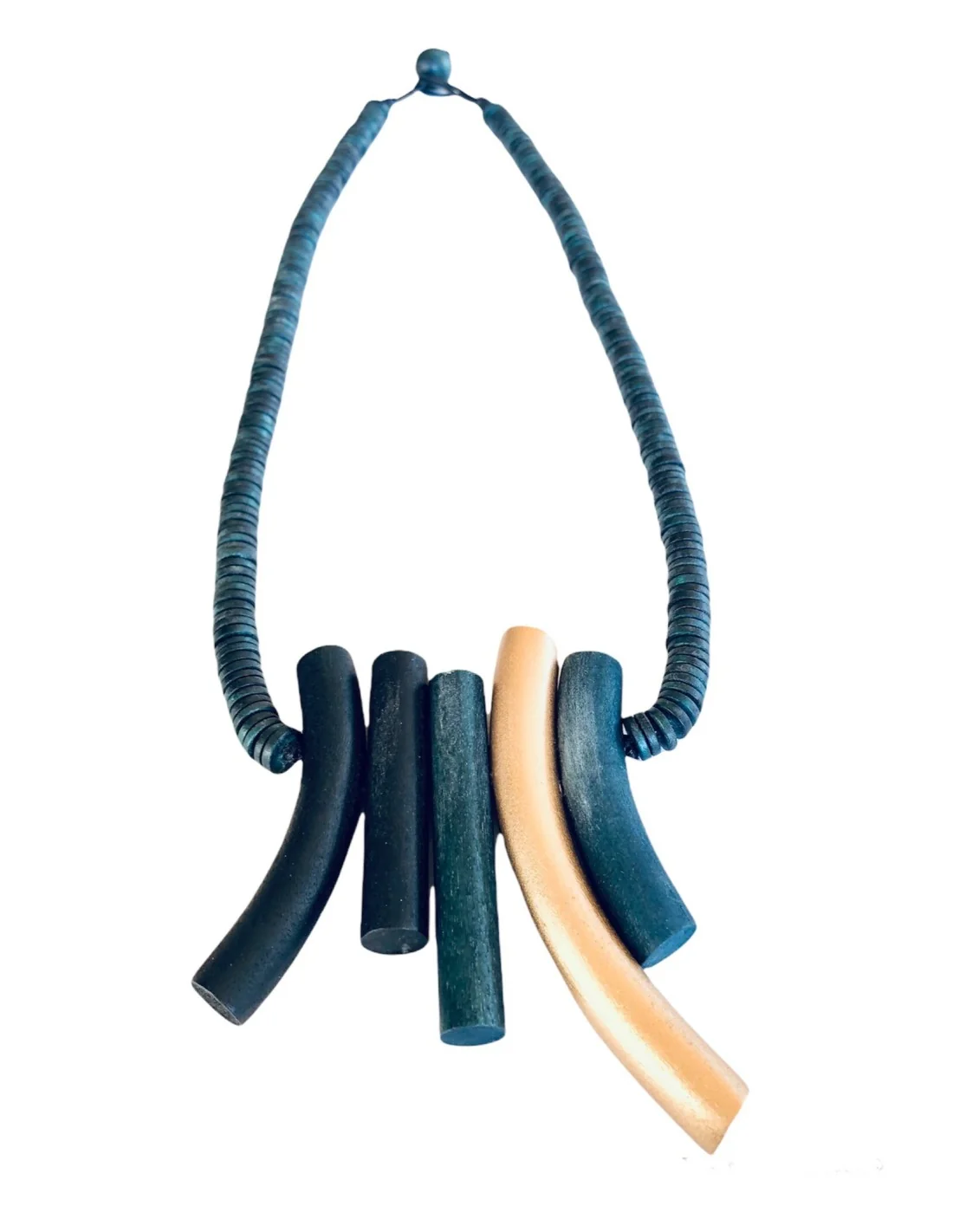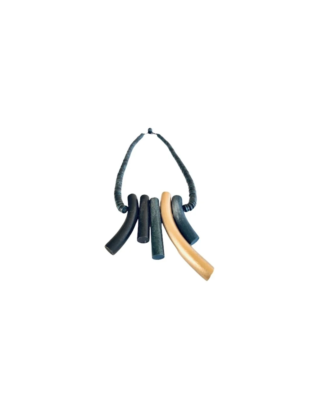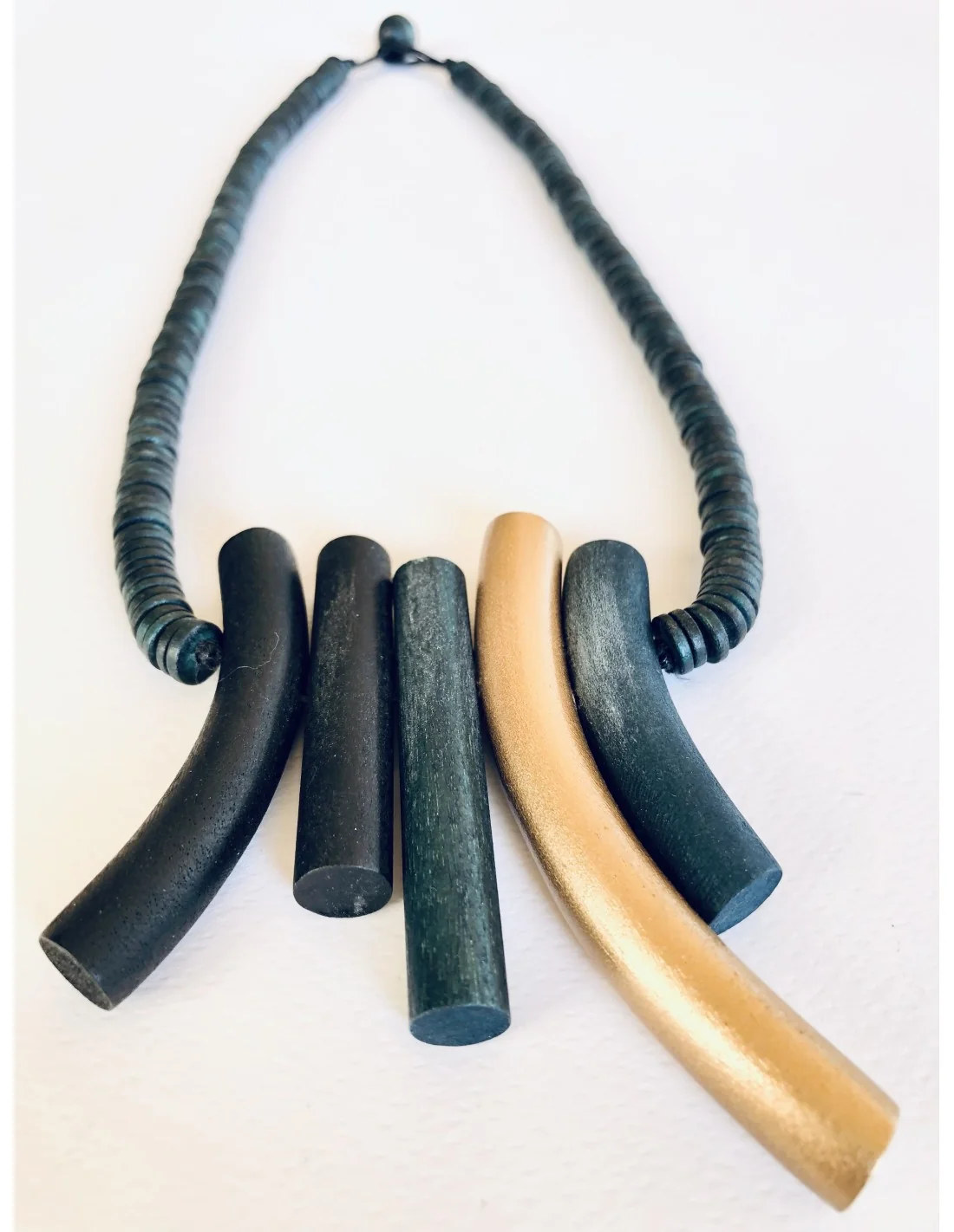 Χειροποίητο γυναικείο ξύλινο κολιέ σε μαύρο, χρυσό και λαδί The Chief