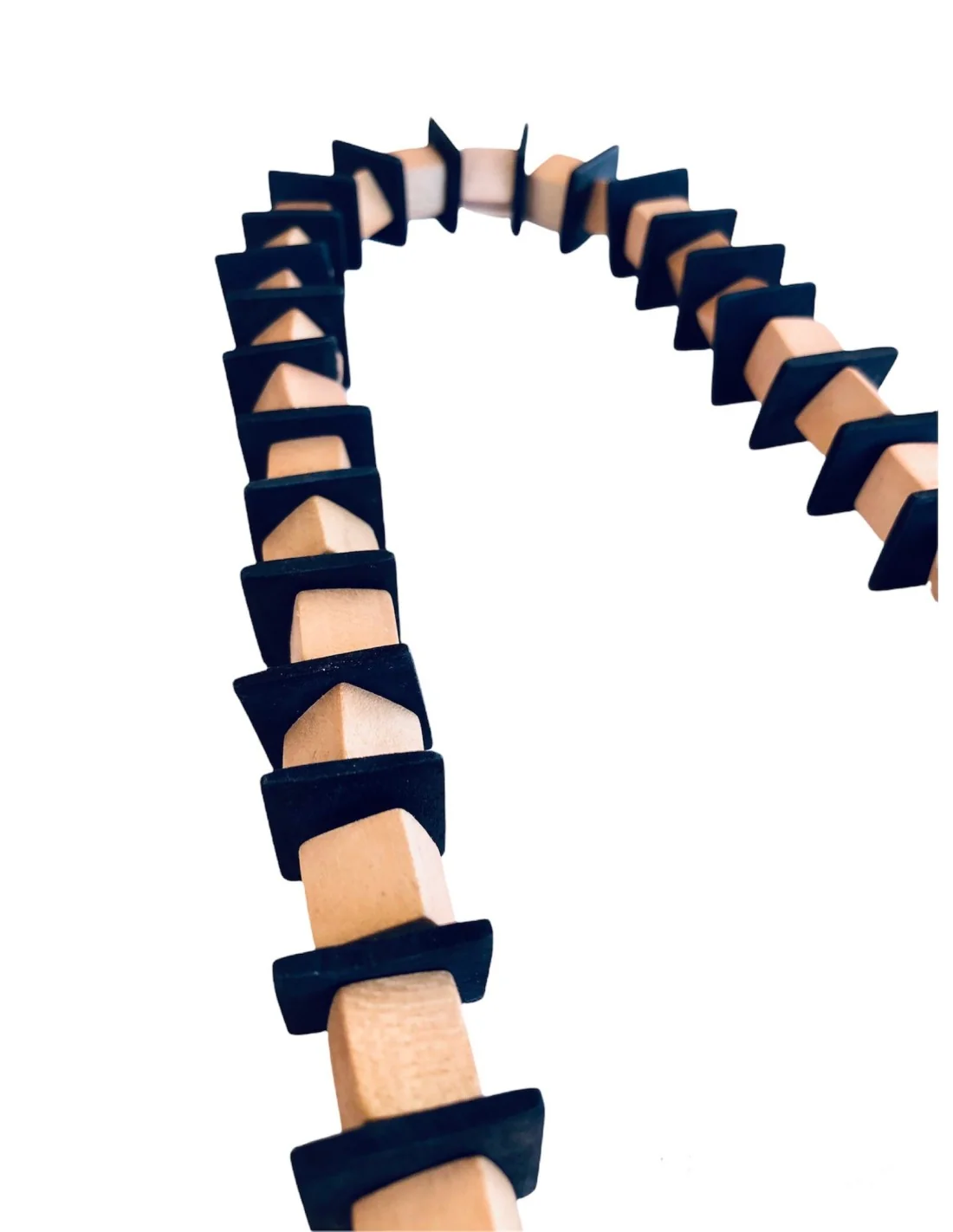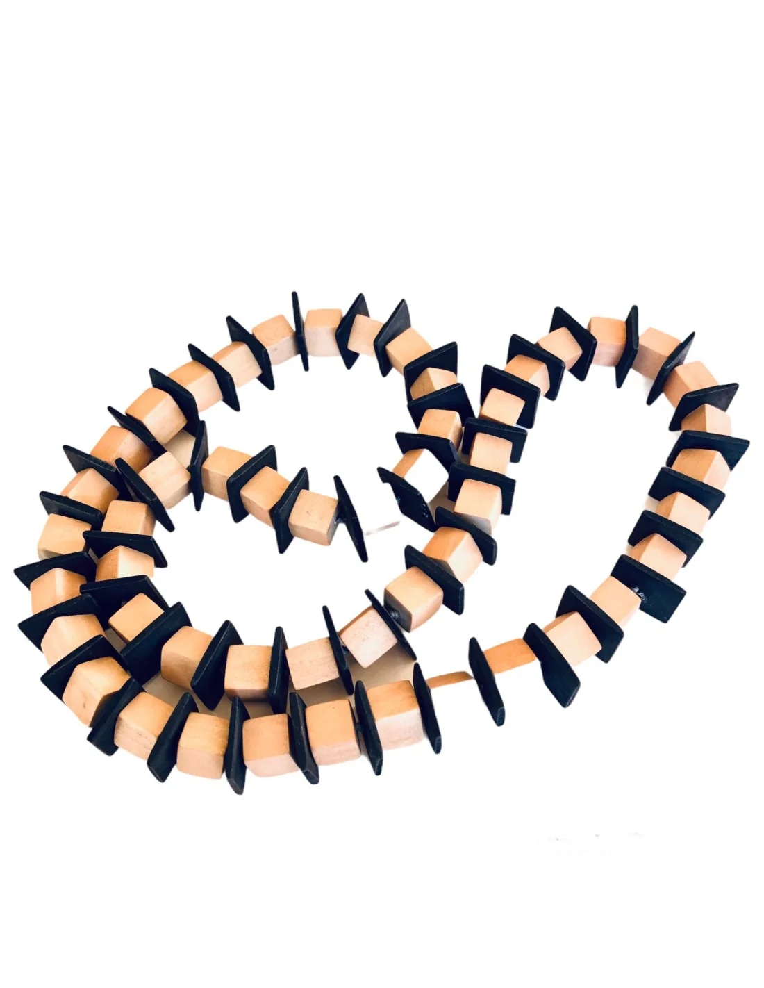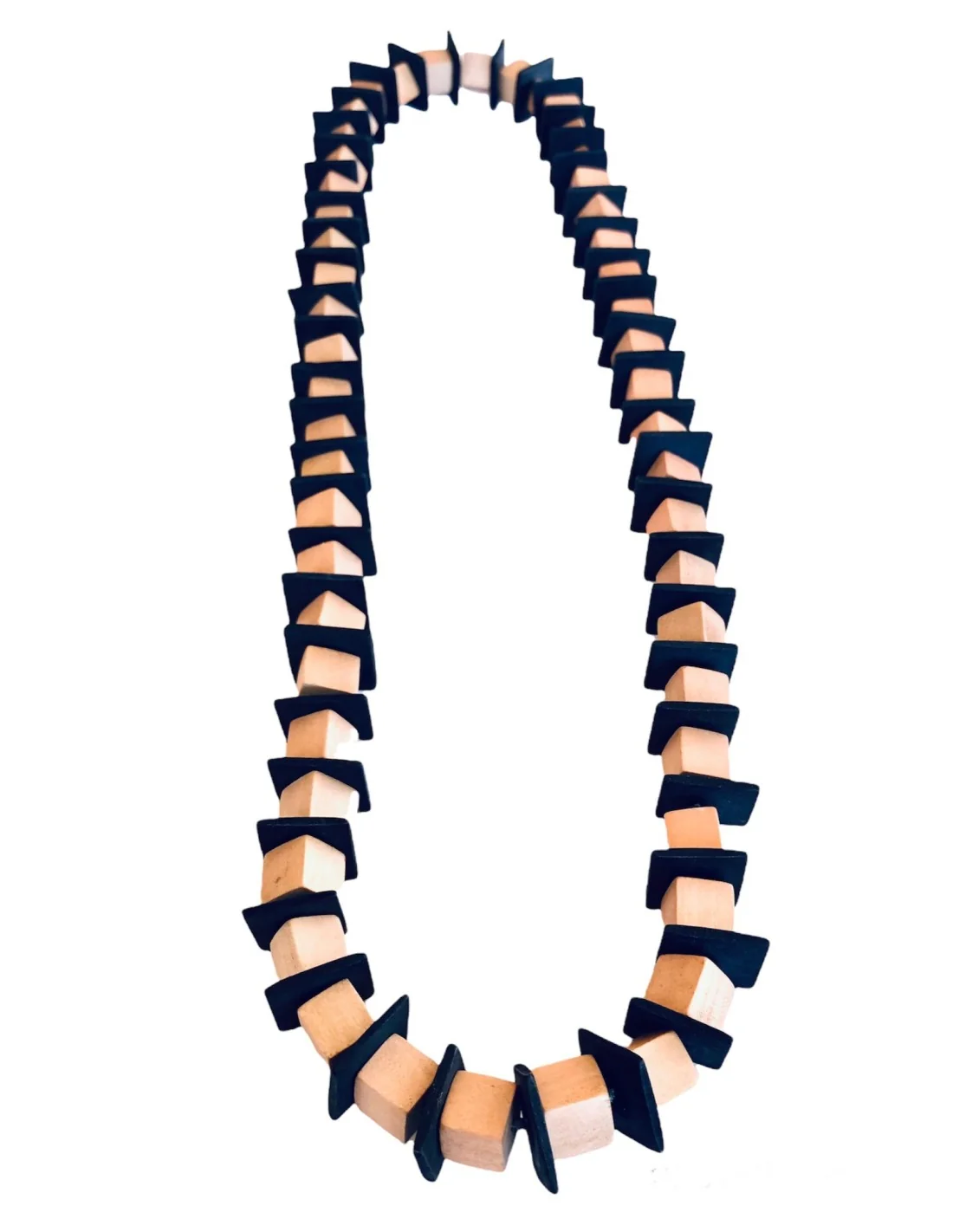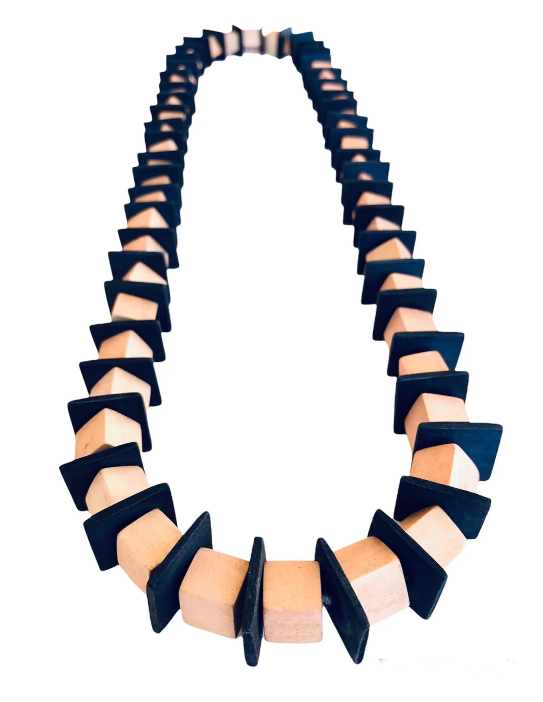 Χειροποίητο γυναικείο τρισδιάστατο ξύλινο κολιέ σε μπεζ και blue black The Cube