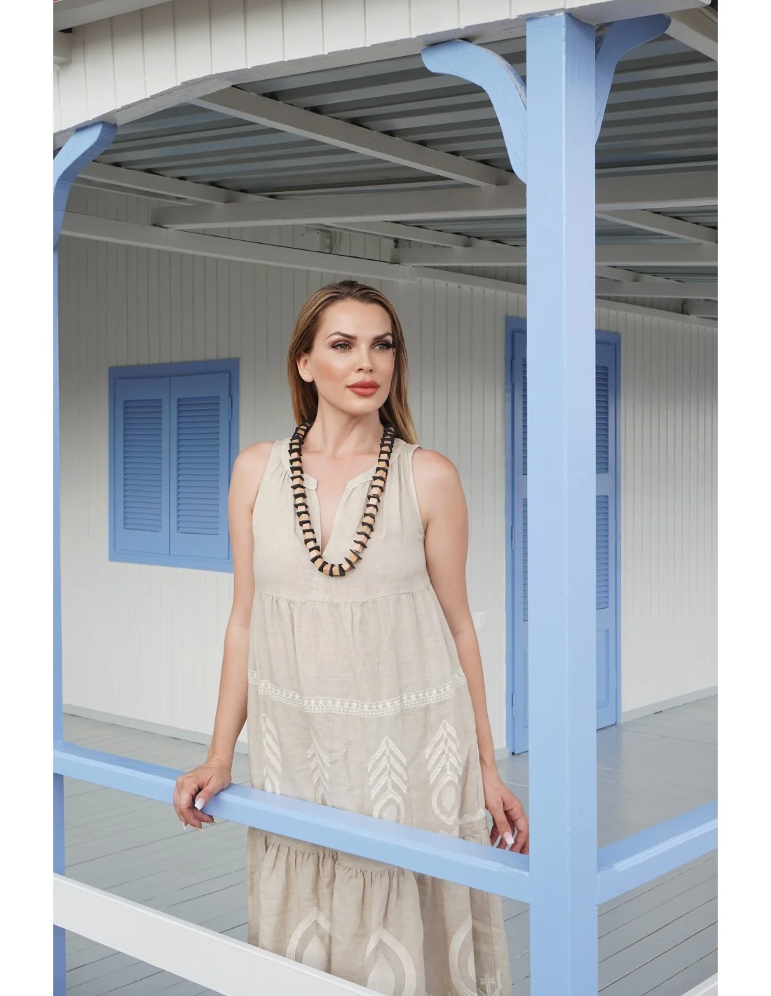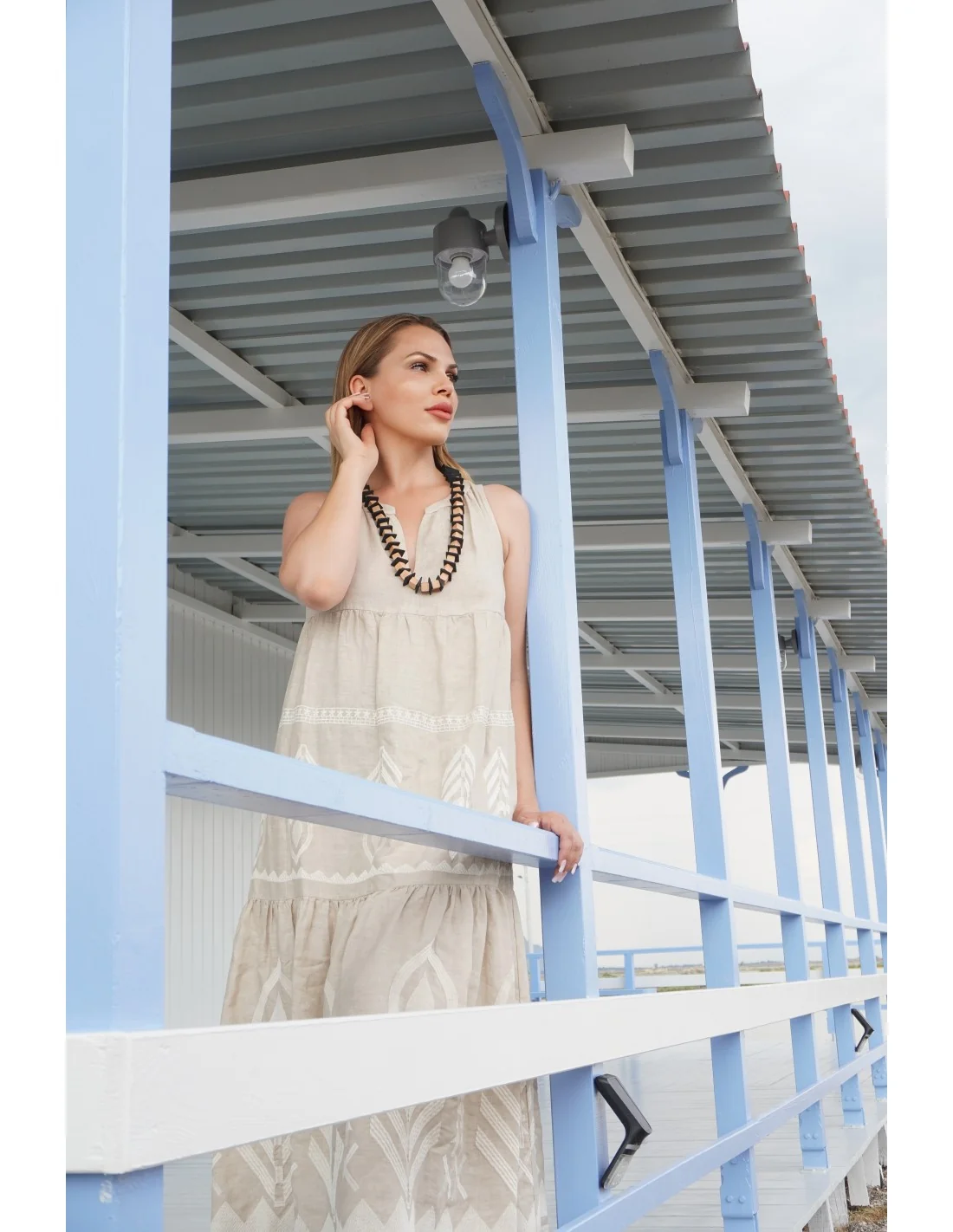 Φτιαγμένο με προσοχή στη λεπτομέρεια, αυτό το κολιέ συνδυάζει τους τόνους του μπεζ και του blue black για να δημιουργήσει μια μοναδική εμφάνιση που αποπνέει μοντέρνα αισθητική.
