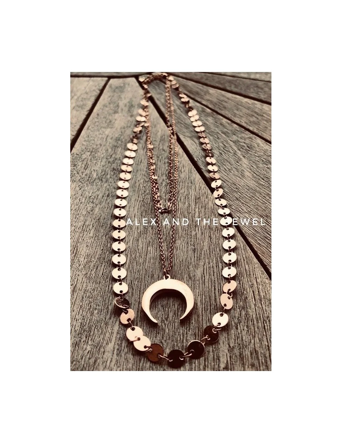 Κατασκευασμένο από ατσάλι σε ροζ χρυσό, αυτό το κολιέ συνδυάζει τρεις σειρές, προσφέροντας βάθος και πολυπλοκότητα στην εμφάνισή σας.