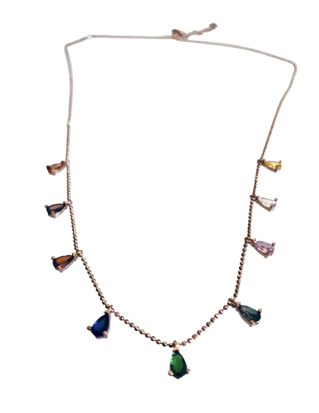 Αναδείξτε τη λάμψη και την κομψότητα με το χειροποίητο κολιέ "Liberia", κατασκευασμένο από ασήμι 925 και διακοσμημένο με πολύχρωμα κρύσταλλα Τσεχίας.