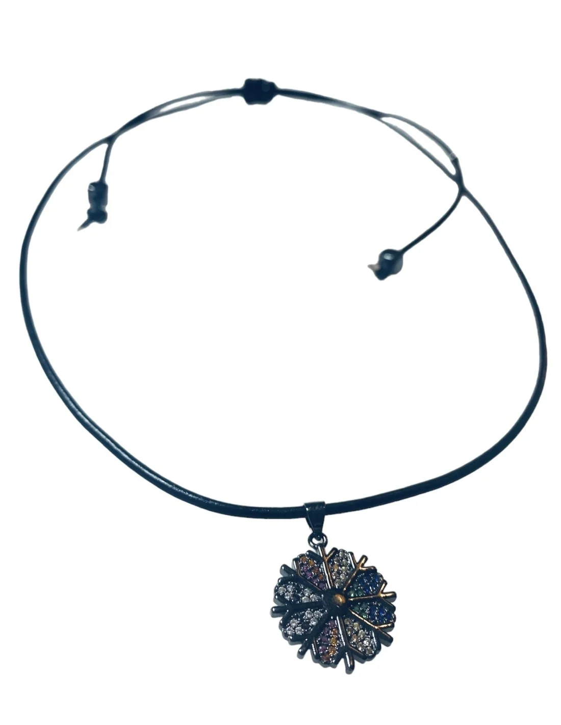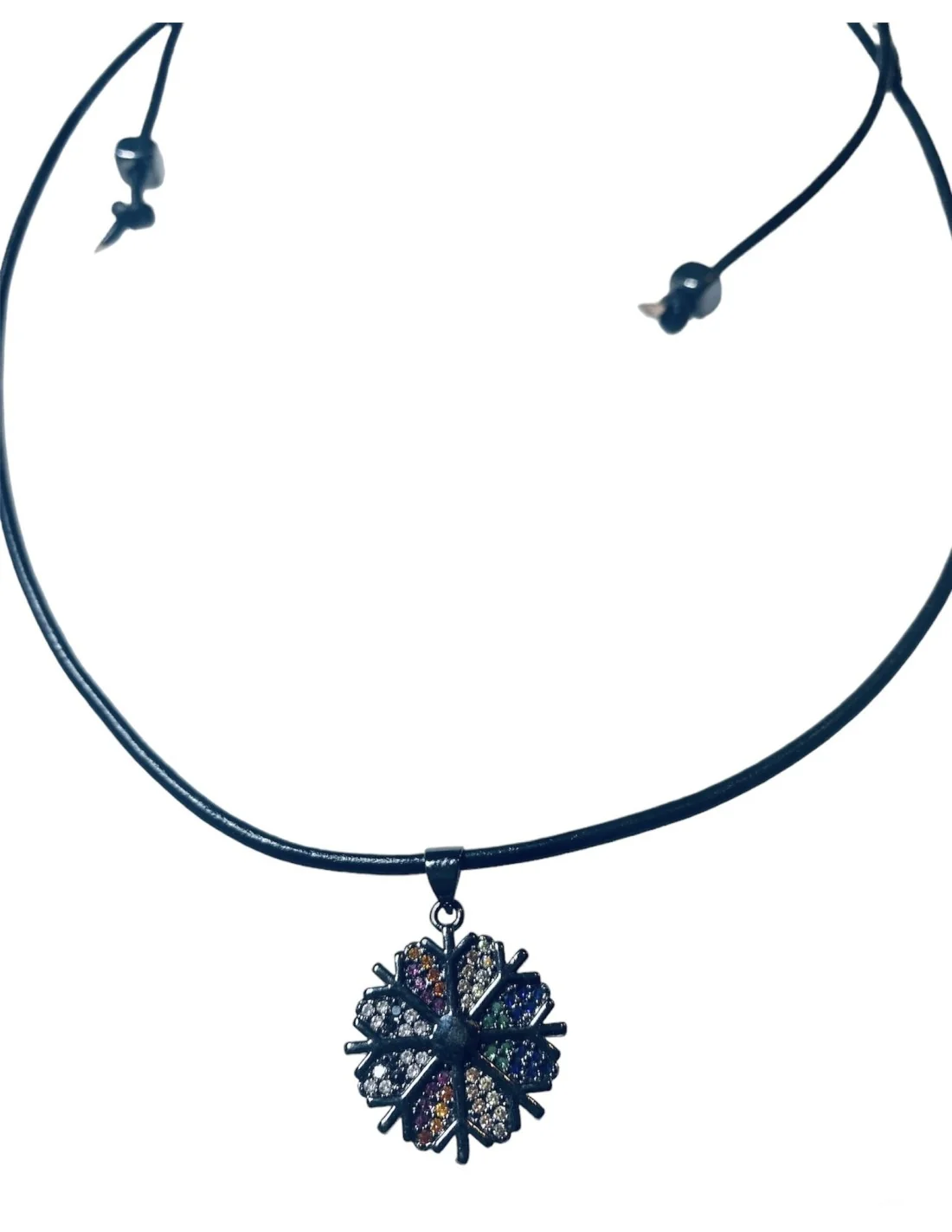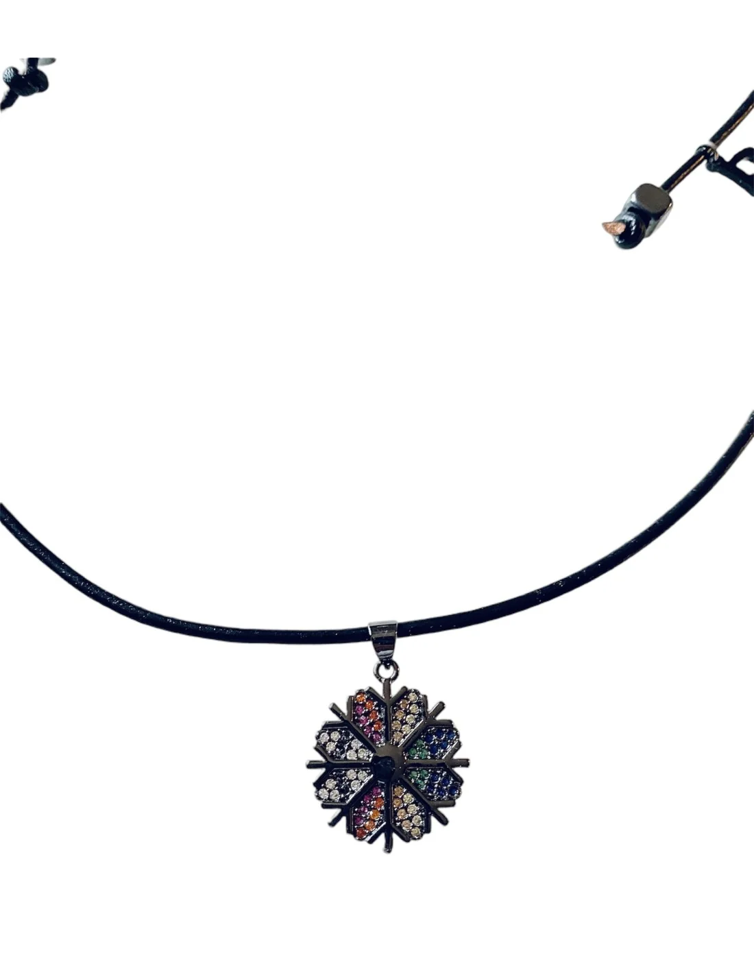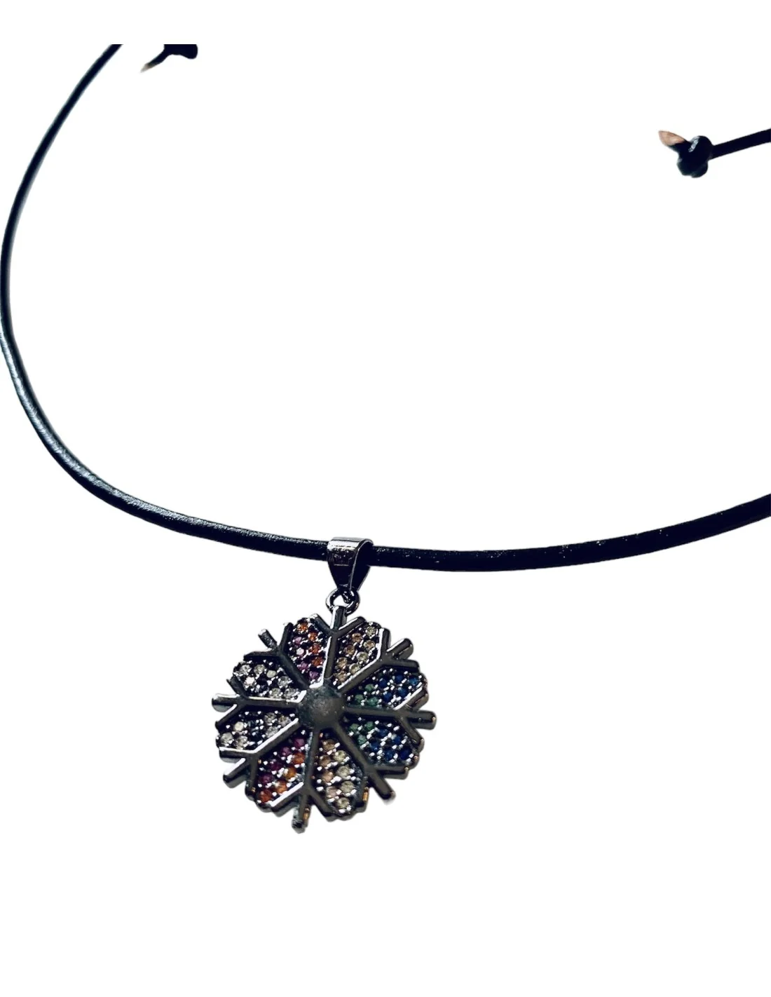 Χειροποίητο χρωματιστό κρεμαστό σε δερμάτινο κορδόνι Snowflake