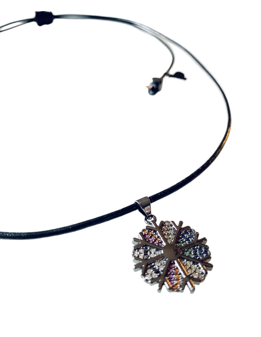 Χειροποίητο χρωματιστό κρεμαστό σε δερμάτινο κορδόνι "Snowflake"