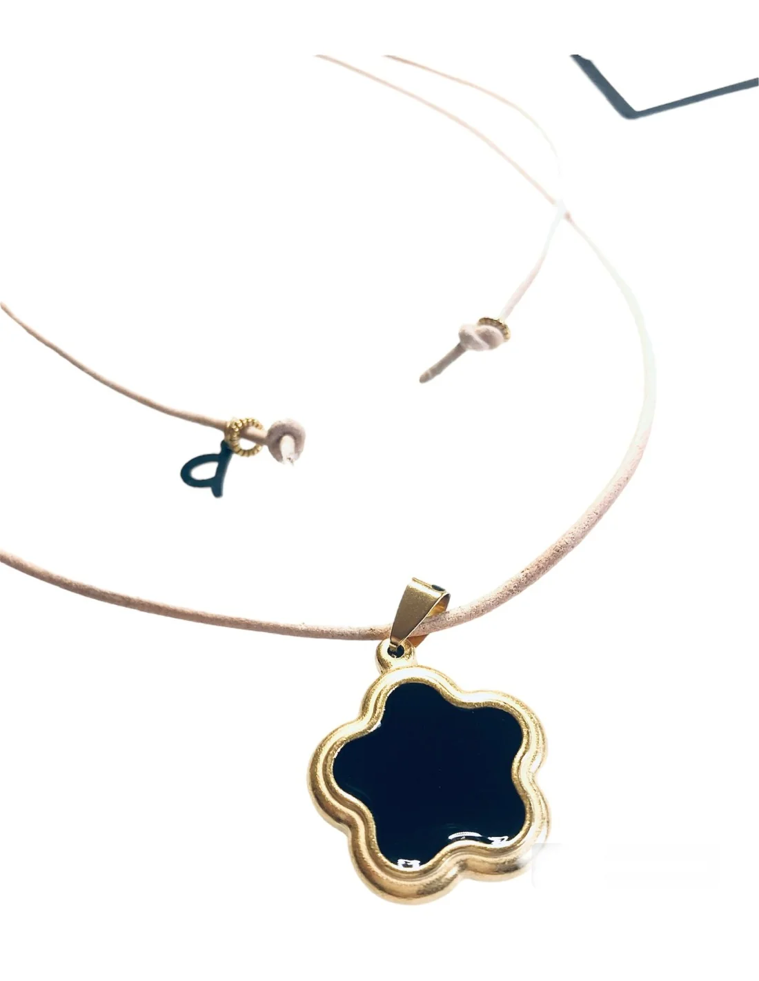 Αναδείξτε τη φυσική σας ομορφιά με το κολιέ "Fiore", ένα εκπληκτικό κόσμημα που συνδυάζει την κομψότητα του επιχρυσωμένου ατσαλιού με την αίσθηση του φυσικού δέρματος.