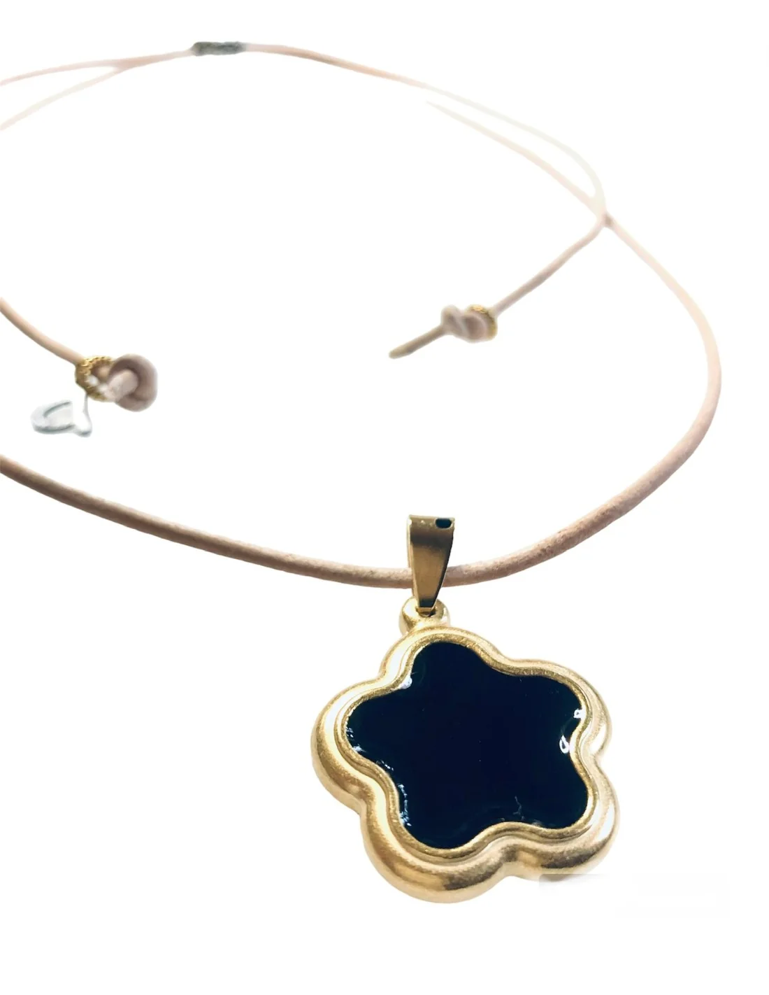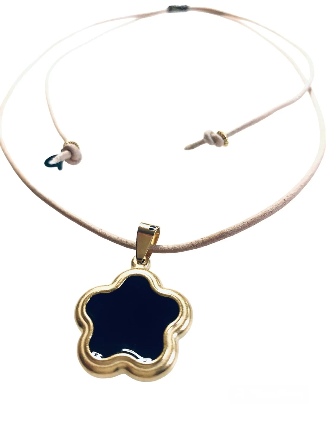 Χειροποίητο κολιέ Λουλούδι από επιχρυσωμένο ατσάλι σε δέρματινο λουράκι Fiore