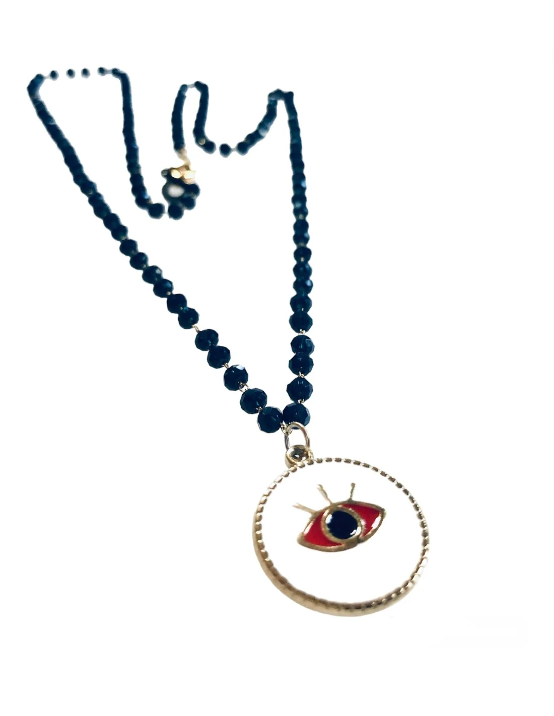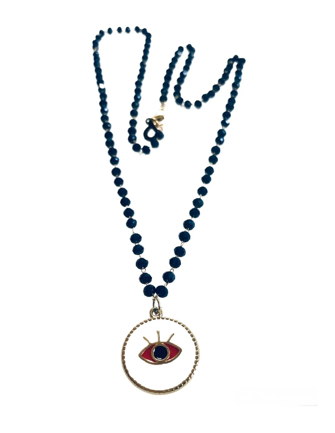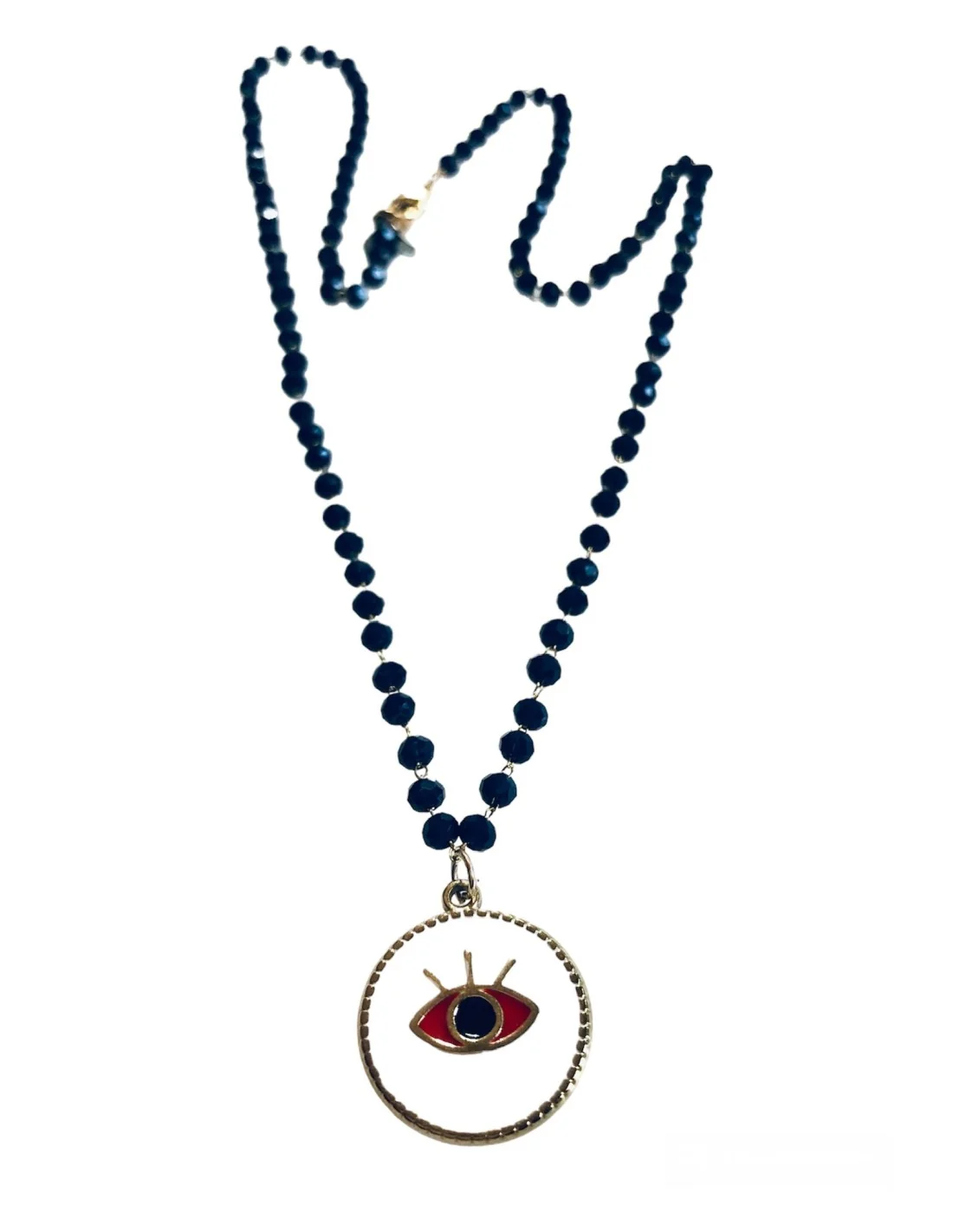 Χειροποίητο κολιέ μάτι σε μπλε ατσάλινο ροζάριο με κρεμαστό στοιχείο μάτι I see you