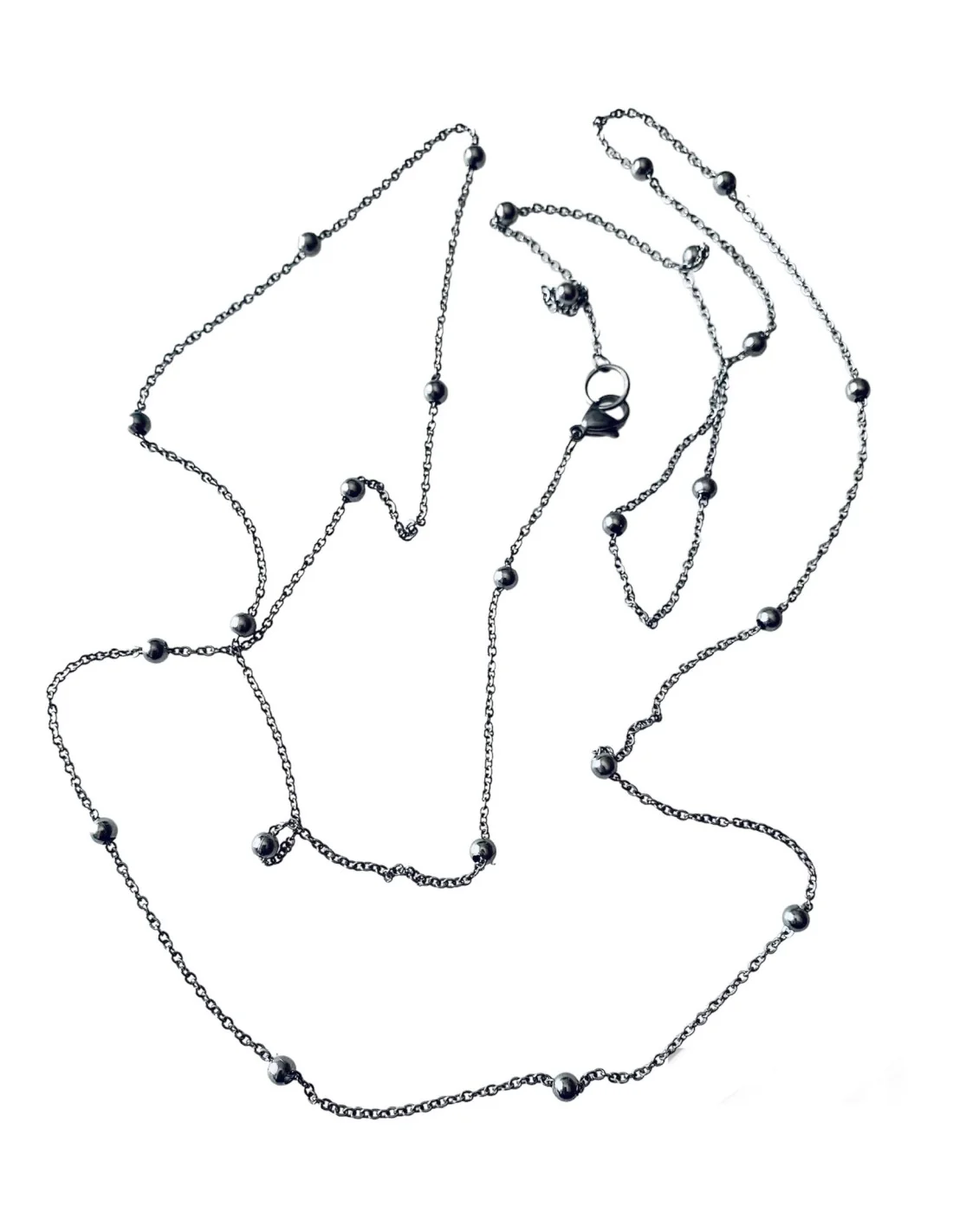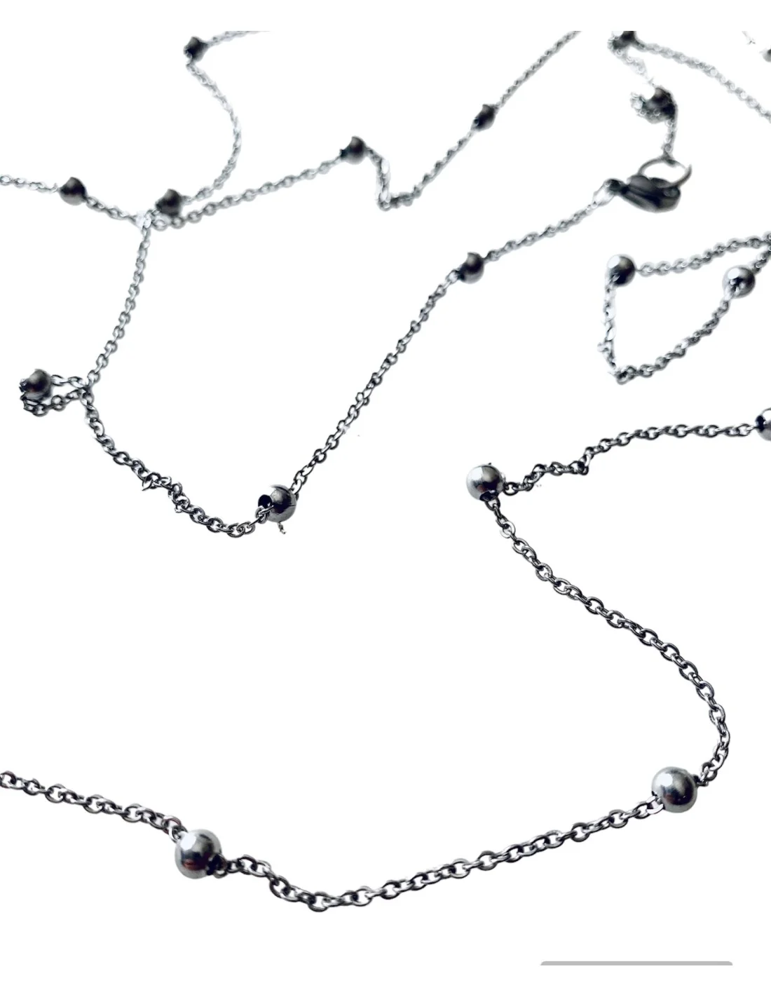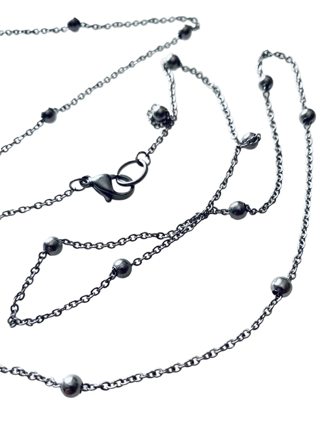 Χειροποίητη ασημί αλυσίδα από ατσάλι με διακοσμητικές μπίλιες "Dorina"