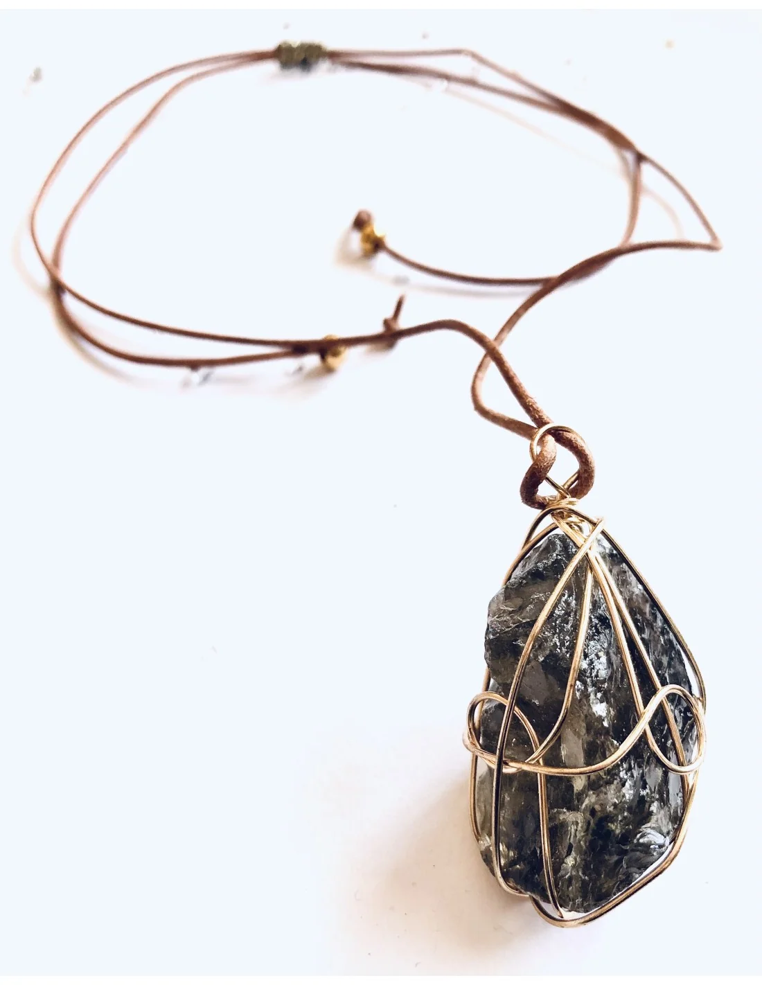 Χειροποίητο κολιέ με πέτρα Αχάτη σε λευκό ή γκρι σε δερμάτινο κορδόνι Domna