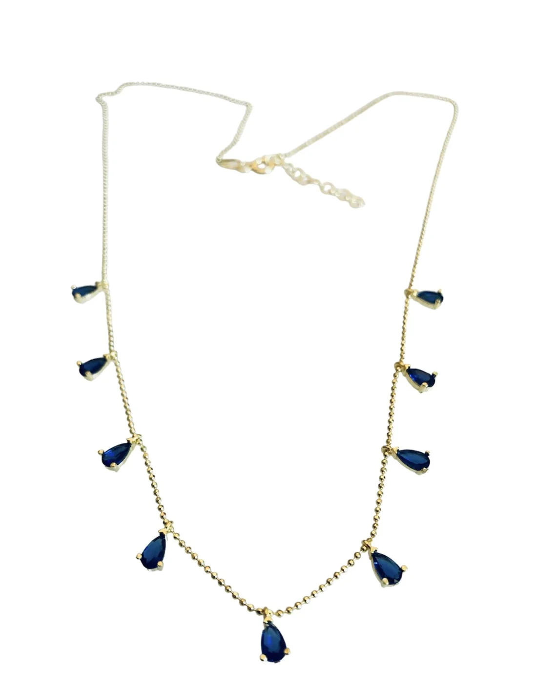 Γυναικείο Κολιέ Anemona από Επιχρυσωμένο Ασήμι 925 με Κρύσταλλα Τσεχίας σε Μπλε Απόχρωση
