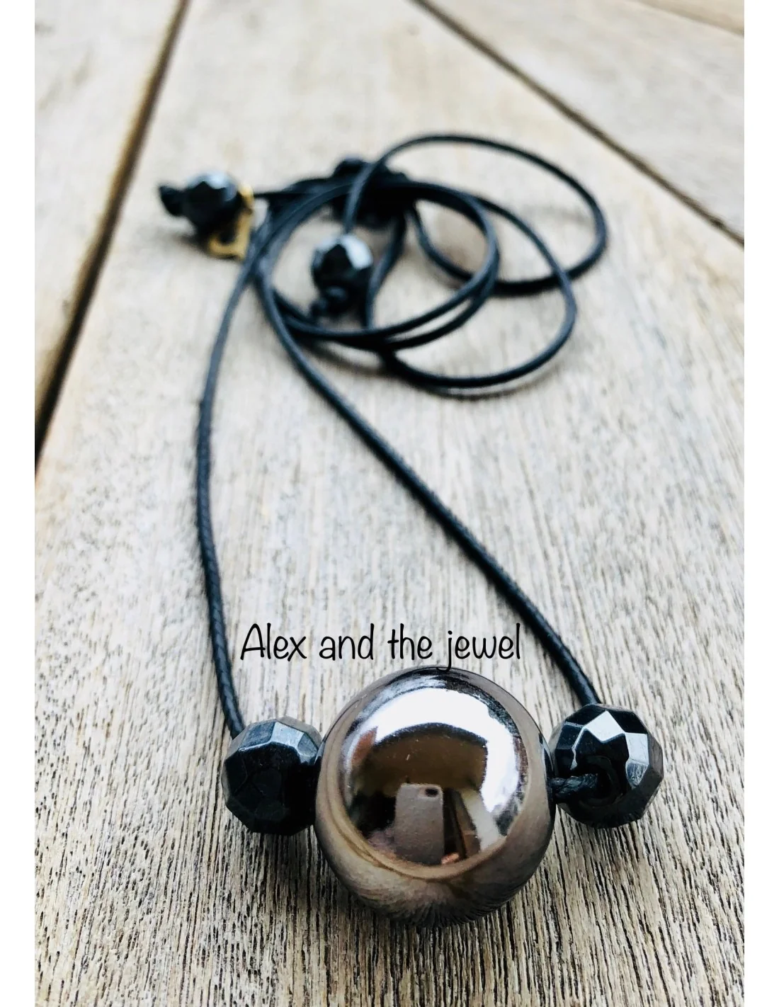 Χειροποίητο κόσμημα κολιέ με στοιχείο σφαίρα σε ασημί και ημιπολύτιμες πέτρες Αιματίτη Sphere