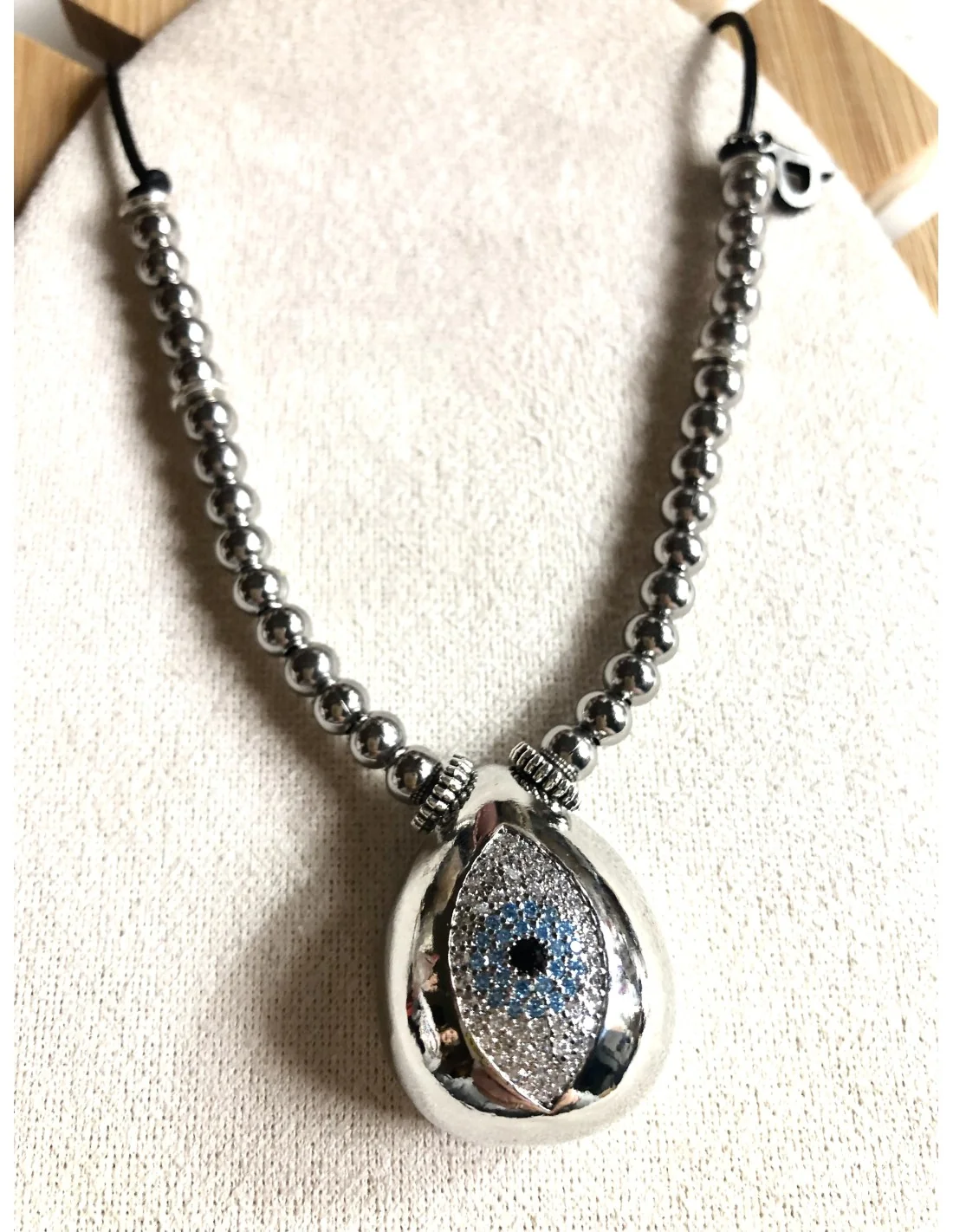 Χειροποίητο Γυναικείο Κολιέ Μάτι με Πέτρες Αιματίτη "Eyecatcher Exclusive"