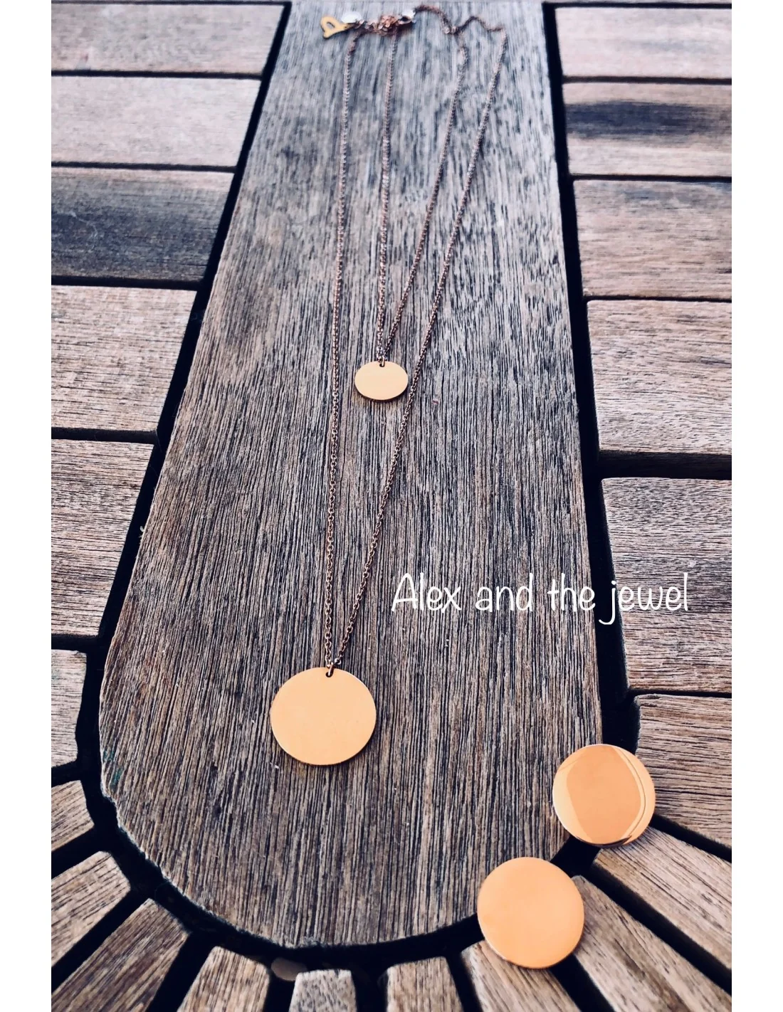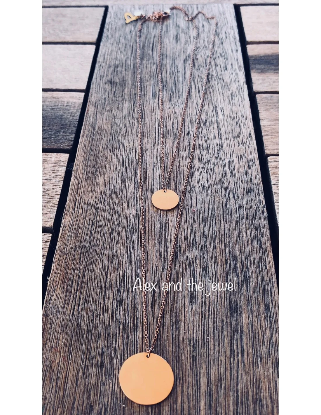 Γυναικείο διπλό κολιέ κόσμημα με δίσκους από ατσάλι σε ροζ χρυσό Mirka