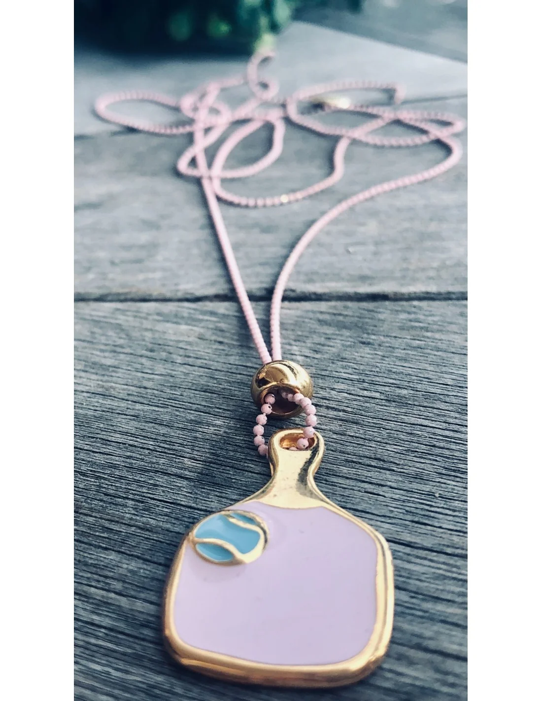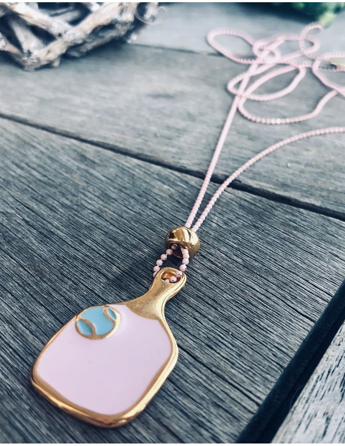 Χειροποίητο κόσμημα κολιέ ροζ ρακέτα σε αλυσίδα διαμαντοκοπής Racket