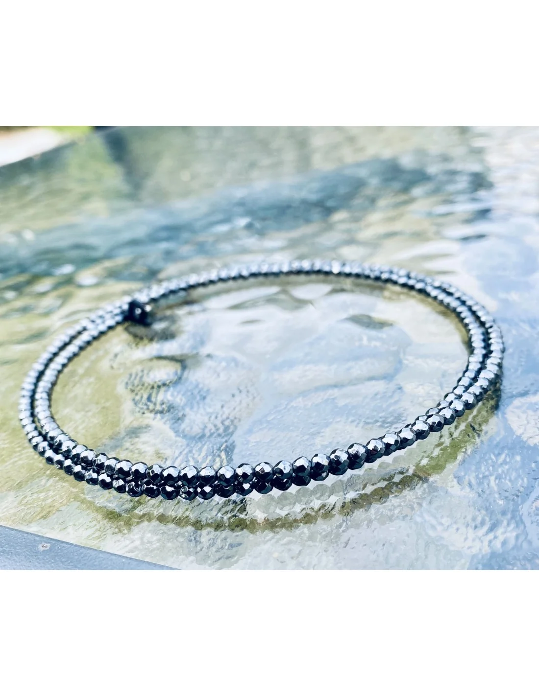 Αναδείξτε το στυλ σας με το χειροποίητο κολιέ choker από ημιπολύτιμες πέτρες Αιματίτη "Libona".