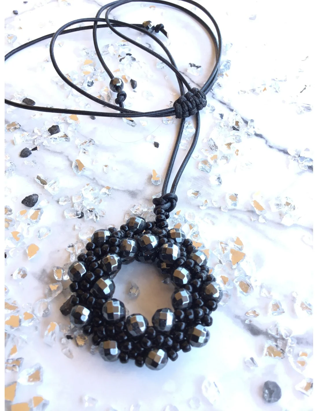 Κατασκευασμένο με χάντρες Miyuki και πέτρες Αιματίτη, το κολιέ προσφέρει μια εξαιρετική αίσθηση πολυτέλειας και στυλ.