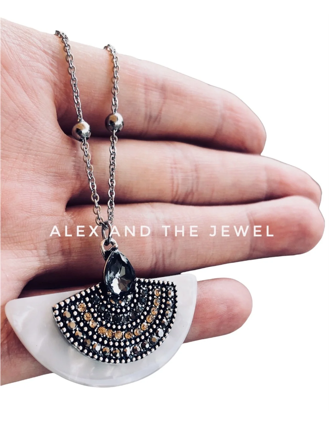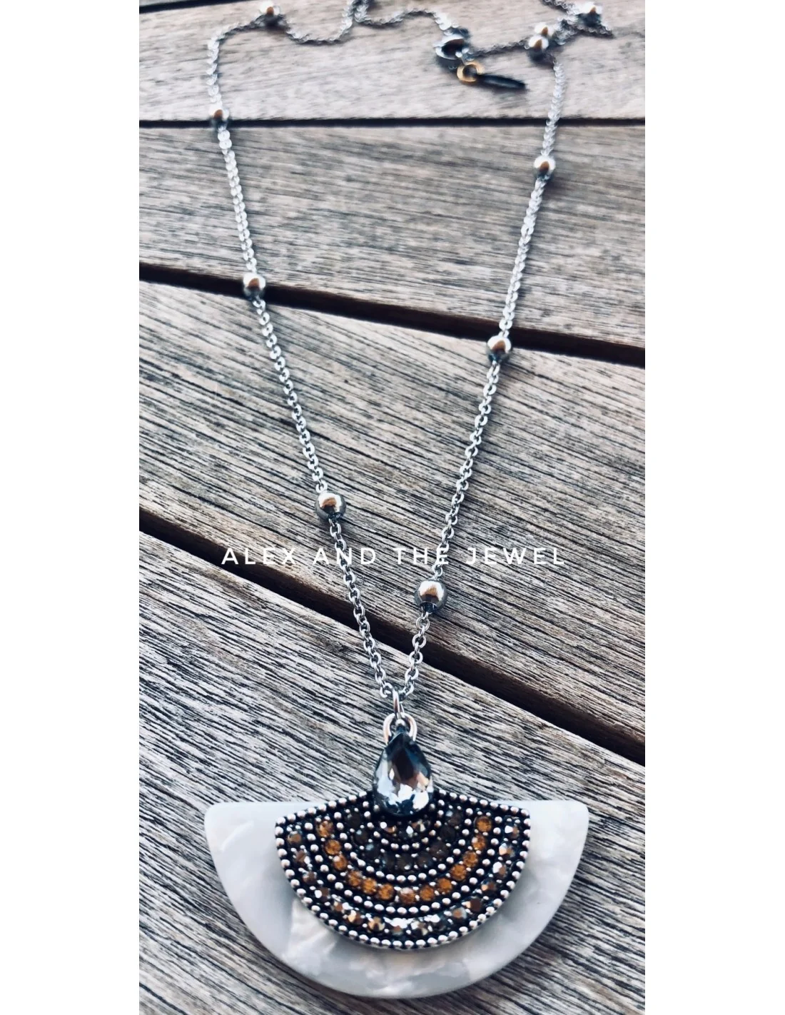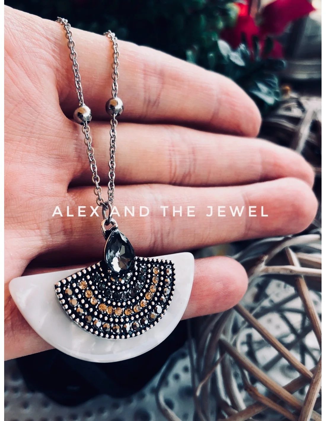 Χειροποίητο γυναικείο κολιέ με κρεμαστό στοιχείο από φίλντισι και ζιργκόν σε λευκό σε αλυσίδα από ατσάλι Egypt