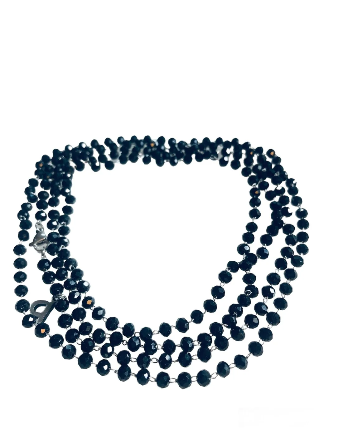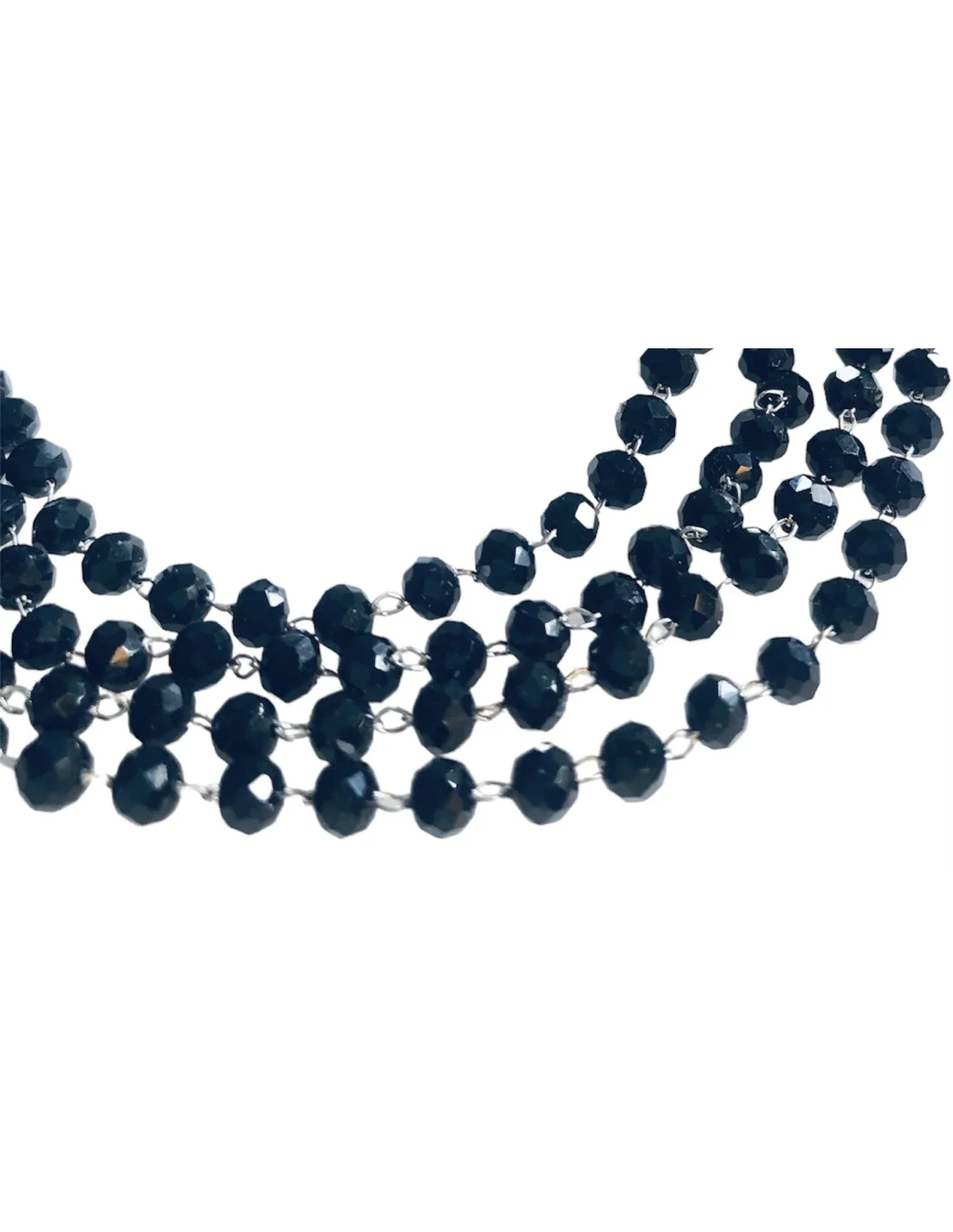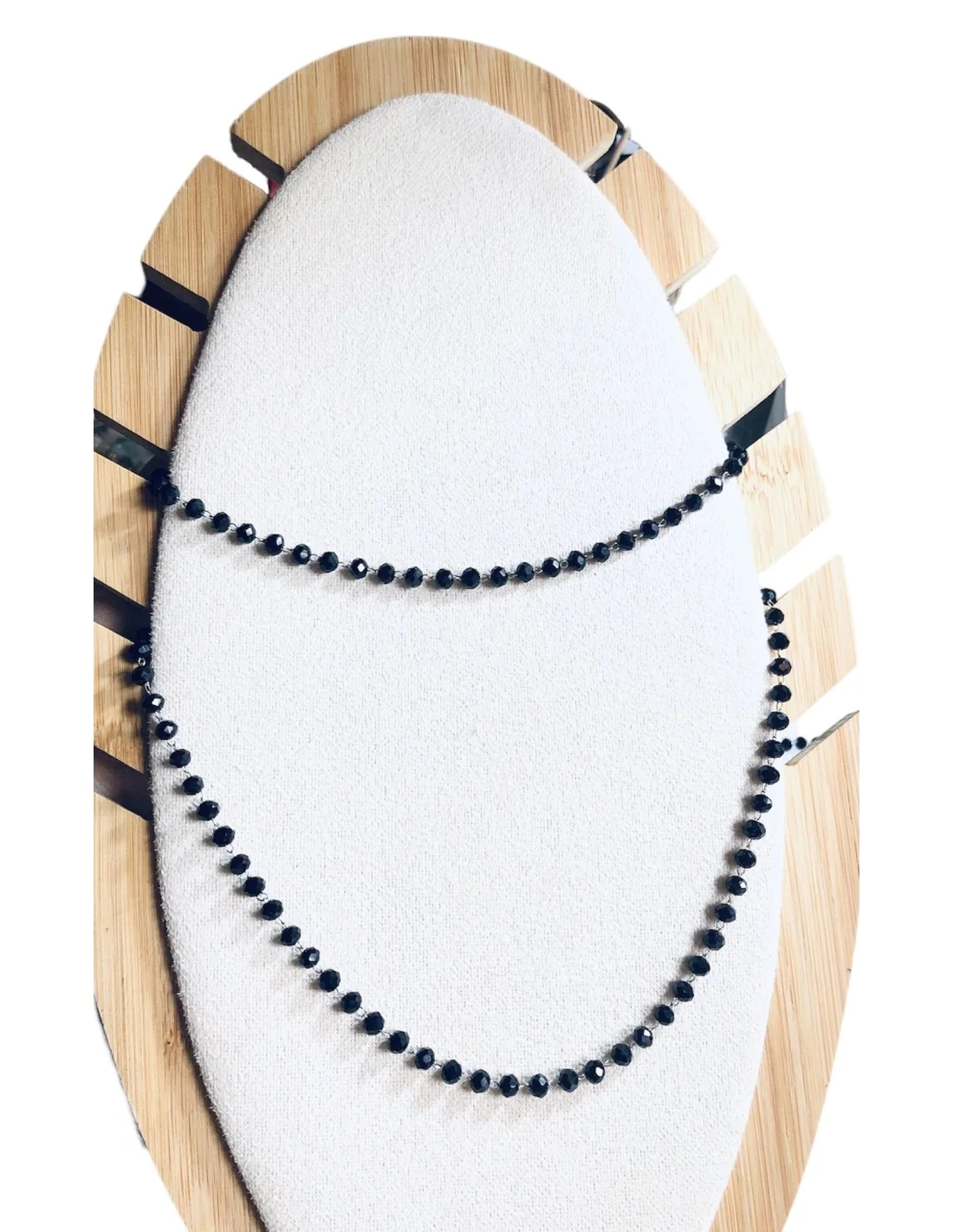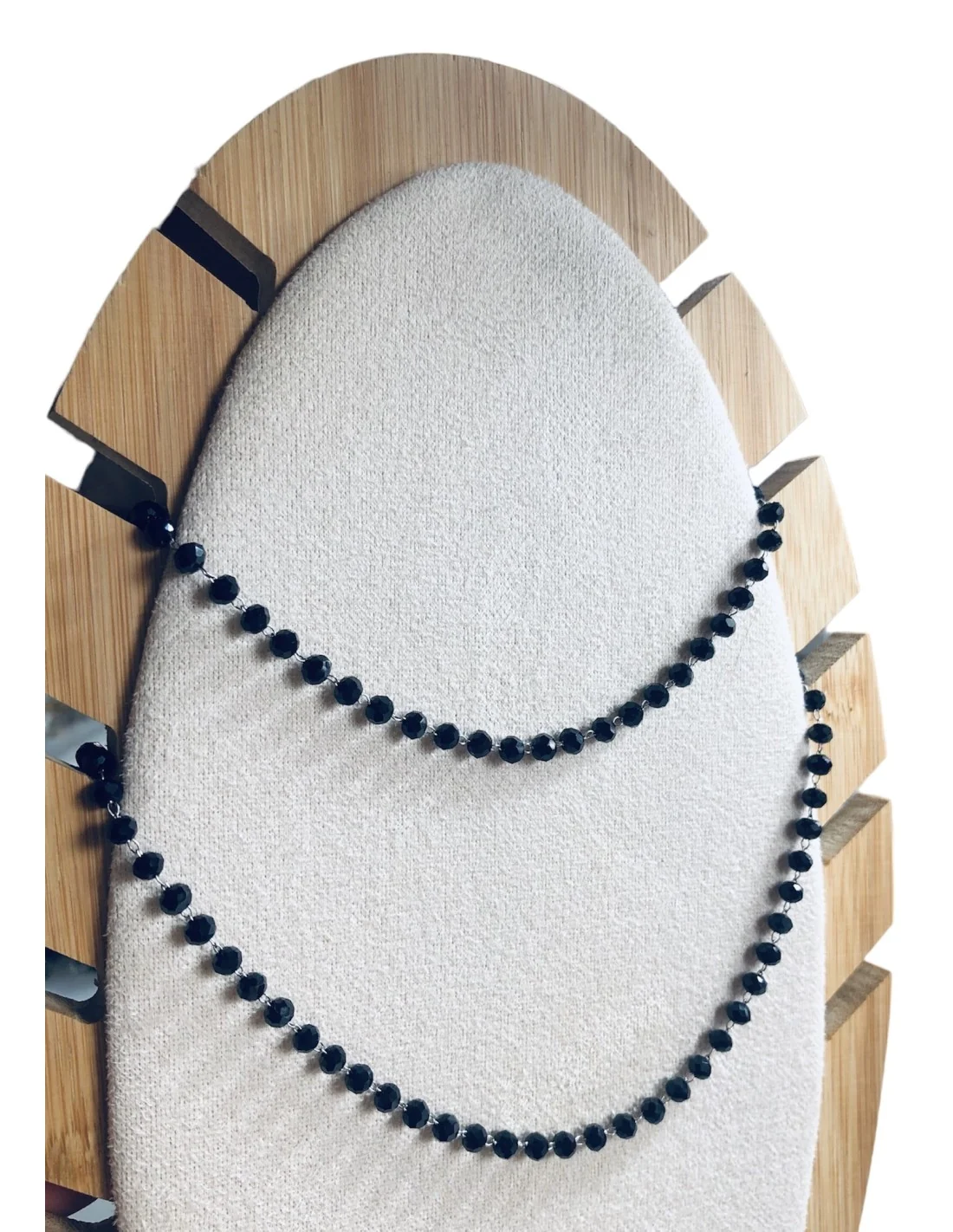 Το κολιέ "Magica" αποπνέει έναν αέρα μυστηρίου και κομψότητας, συνδυάζοντας μαύρα κρύσταλλα Τσεχίας με μια ατσάλινη αλυσίδα υψηλής αντοχής.