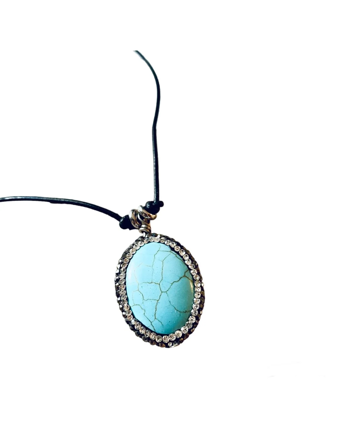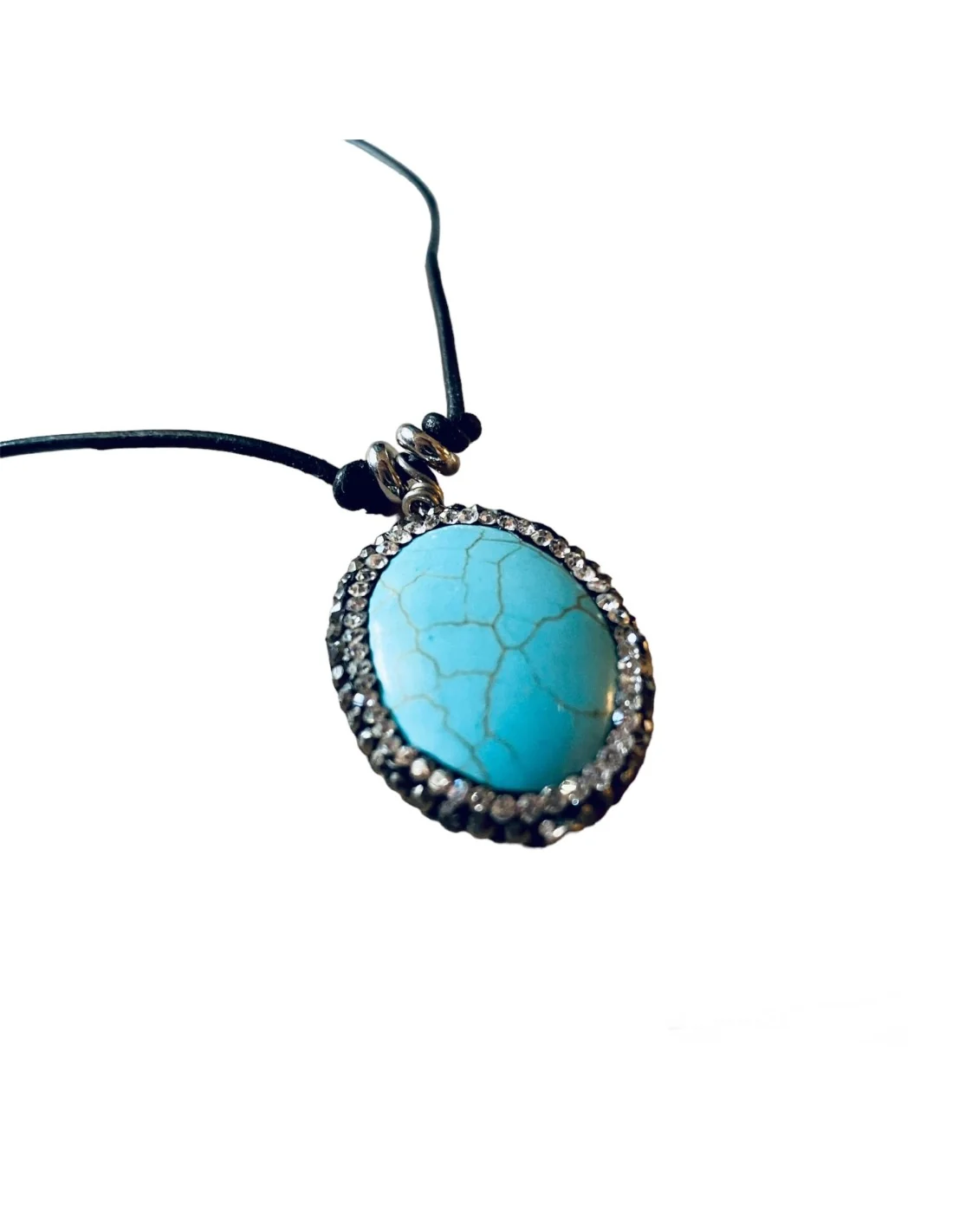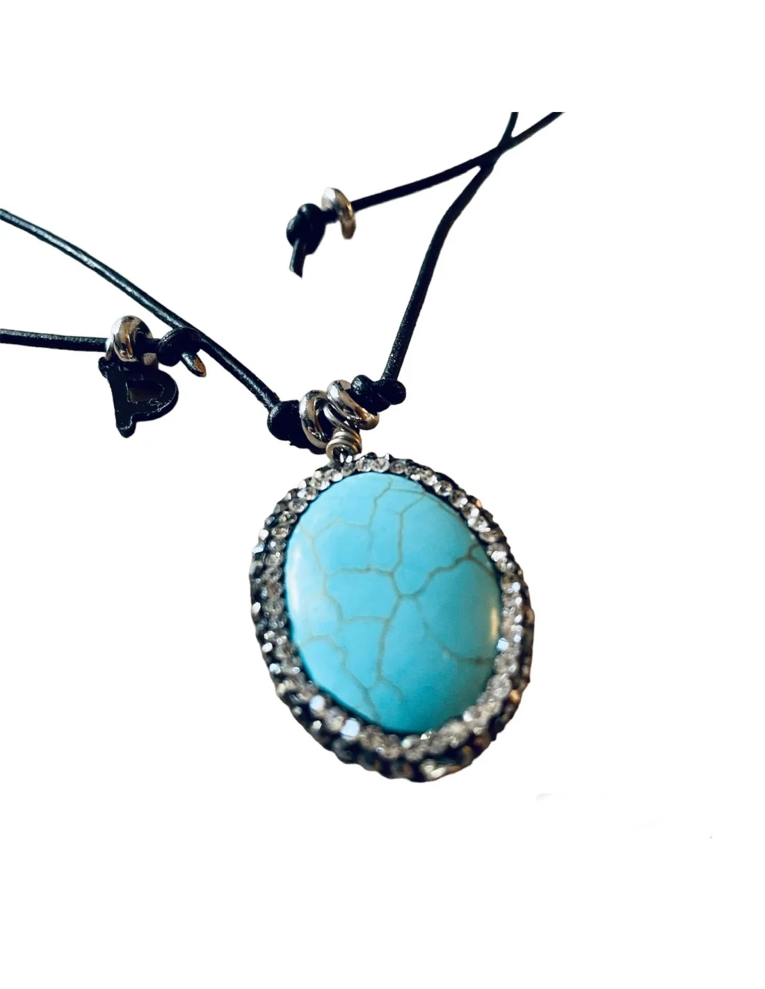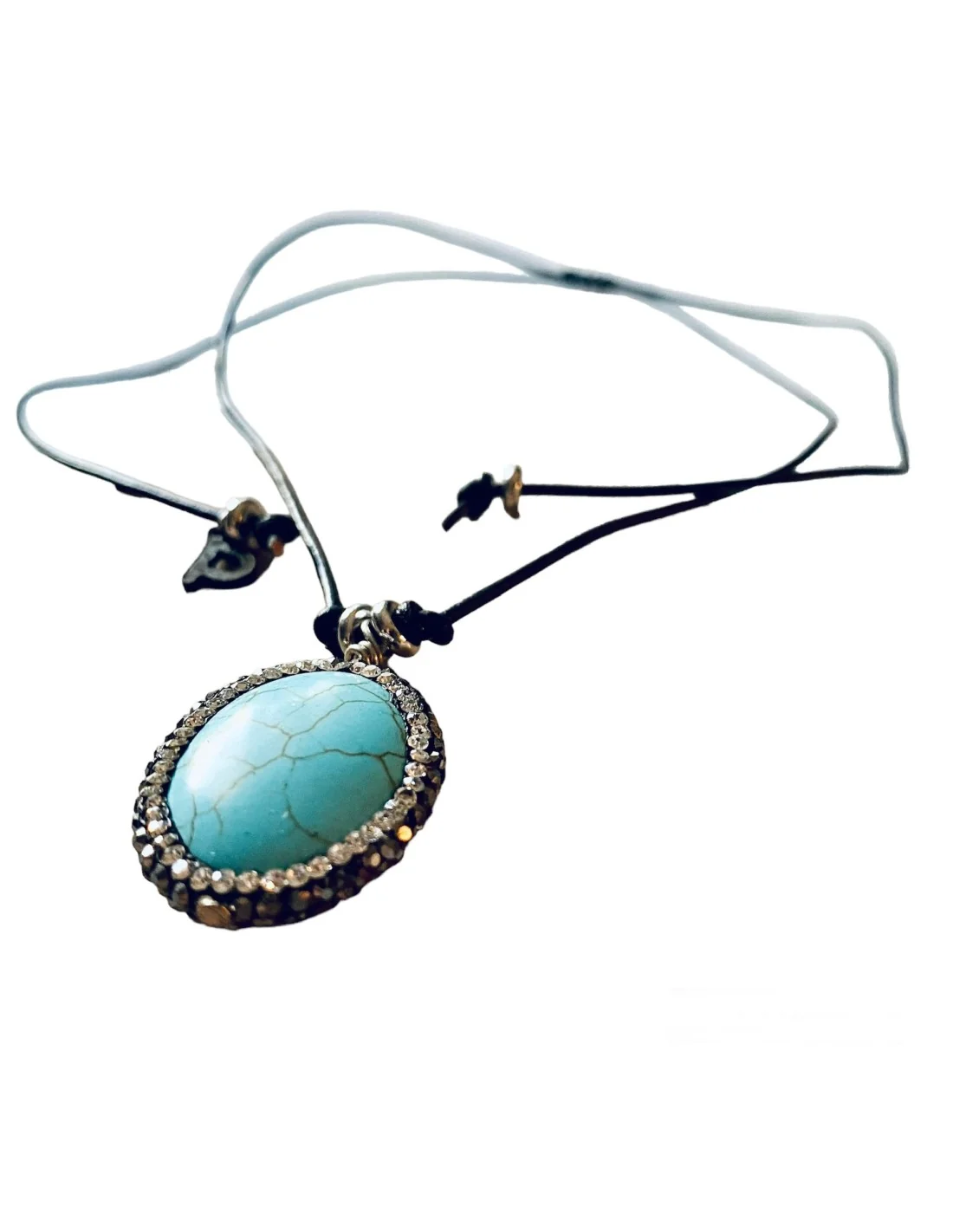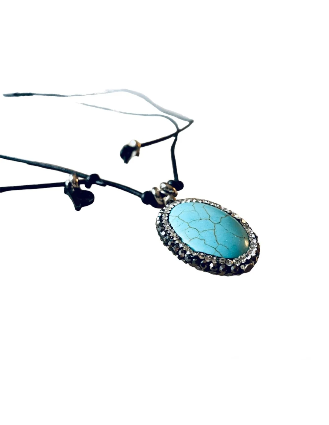 Χειροποίητο Κολιέ με Πέτρες Αχάτη σε Γαλάζιο Χρώμα και Μαρκασίτη Handmade Agate Pendant Sea