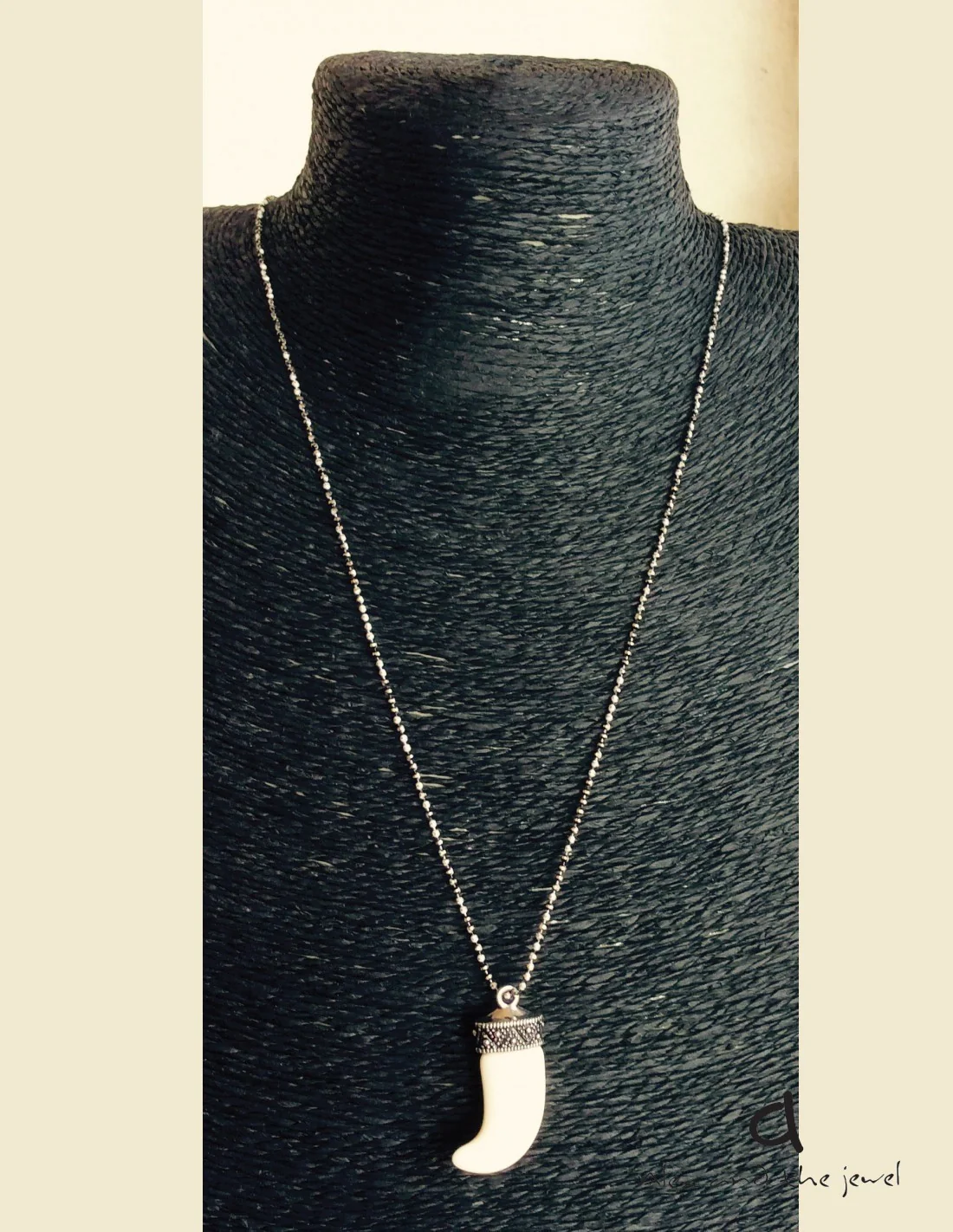 Χειροποίητο κόσμημα κολιέ με λευκό δόντι σε αλυσίδα διαμαντοκοπής Kori