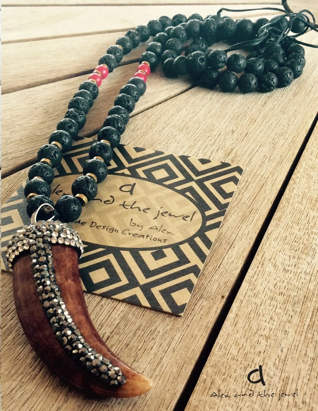 Χειροποίητο κολιέ με σχέδιο δόντι από ξύλο | Alex and the jewel