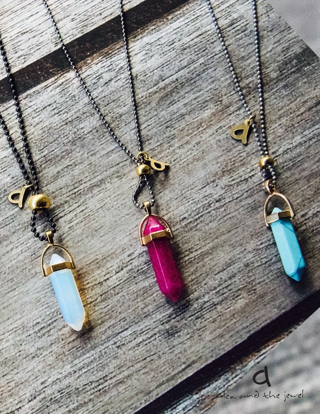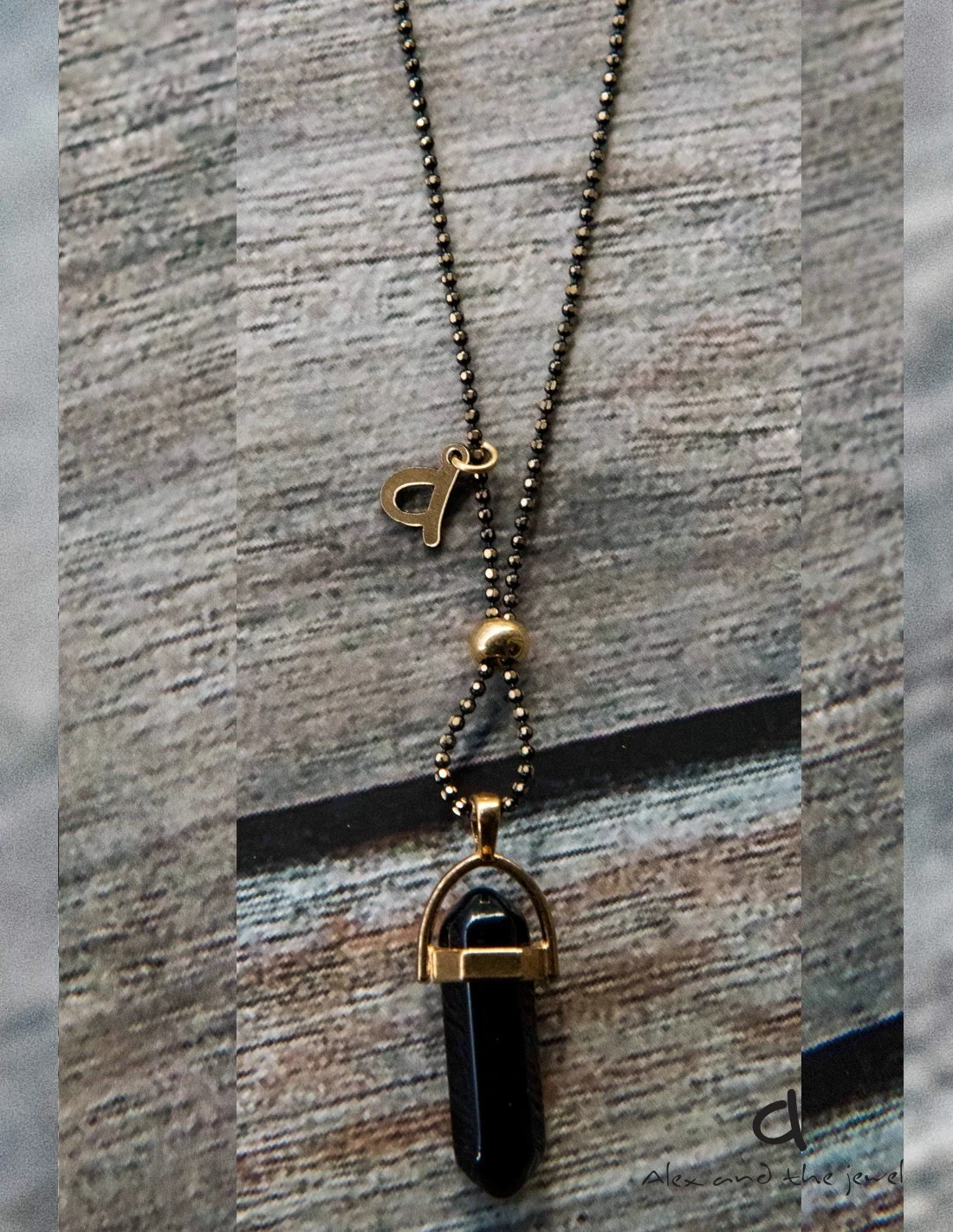 Κολιέ "Bullet" με ημιπολύτιμη πέτρα σε 3 αποχρώσεις και επίχρυση μπίλια | Alex and the jewel