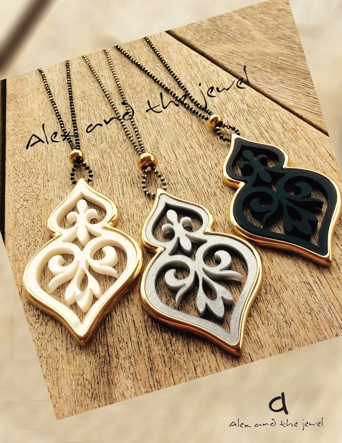 Χειροποίητο κόσμημα "Anatol" με κρεμαστό επίχρυσο μοτίφ από ορείχαλκο σε γκρι, λευκό ή μαύρο σε αλυσίδα διαμαντοκοπής | Alex and the jewel