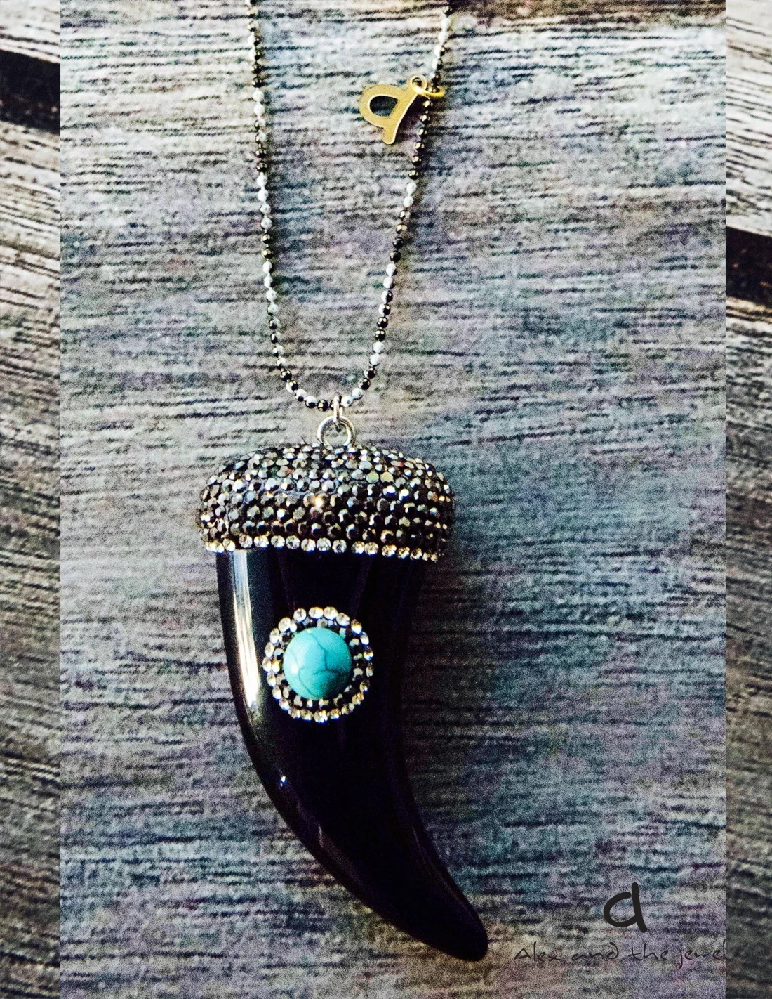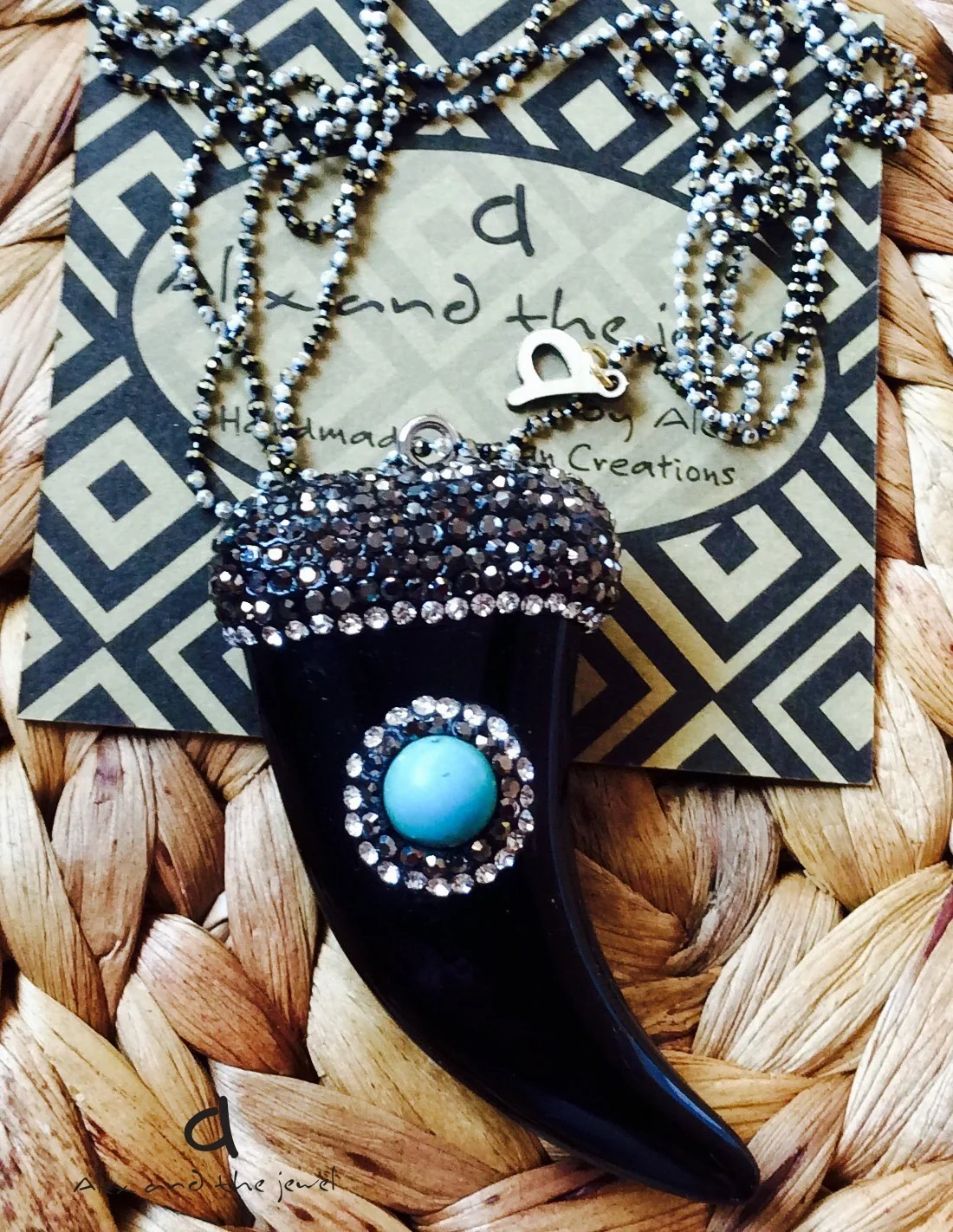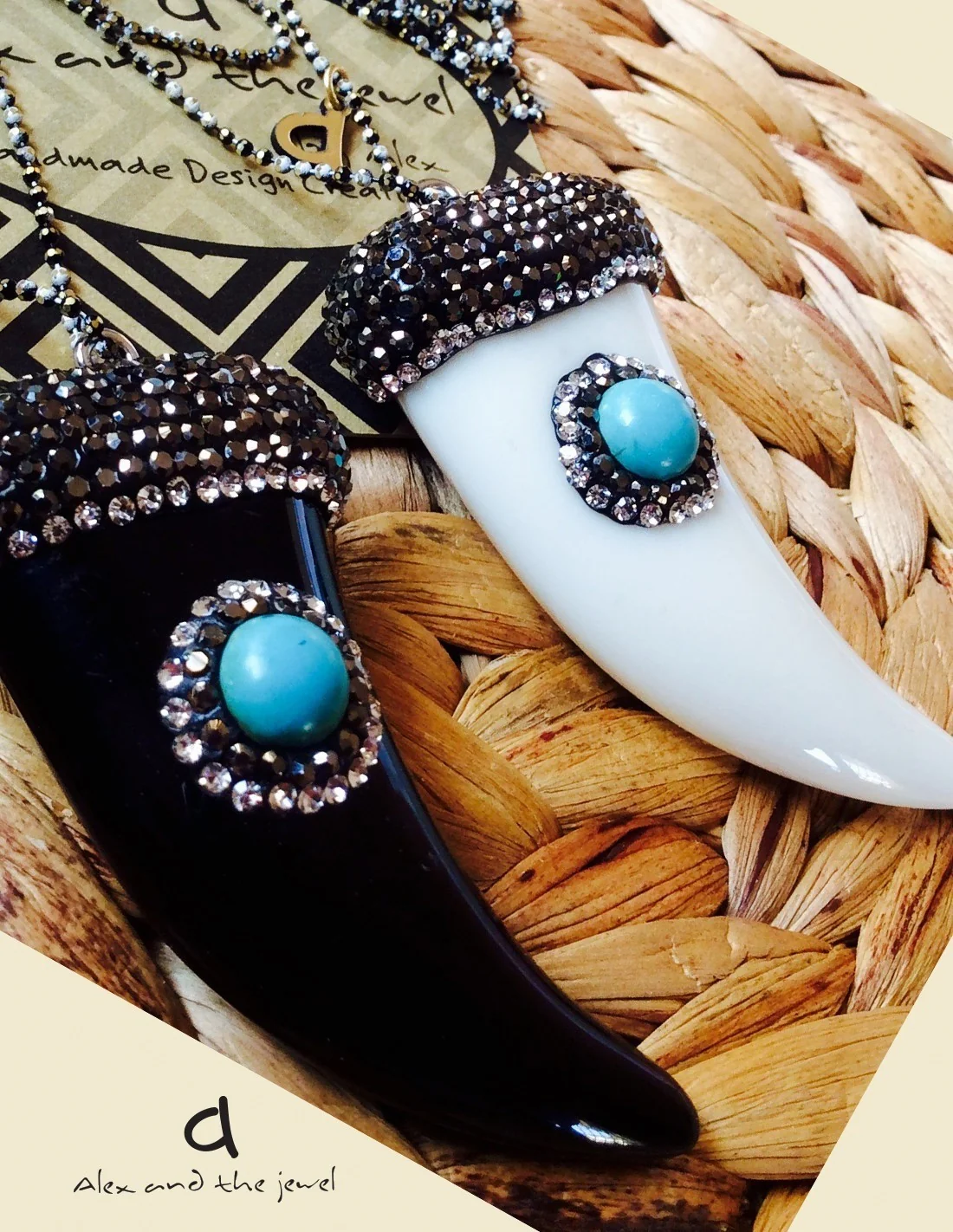 Χειροποίητο κολιέ "Zambia" με δόντι σε λευκό ή μαύρο, μαρκασίτη και Χαολίτη | Alex and the jewel