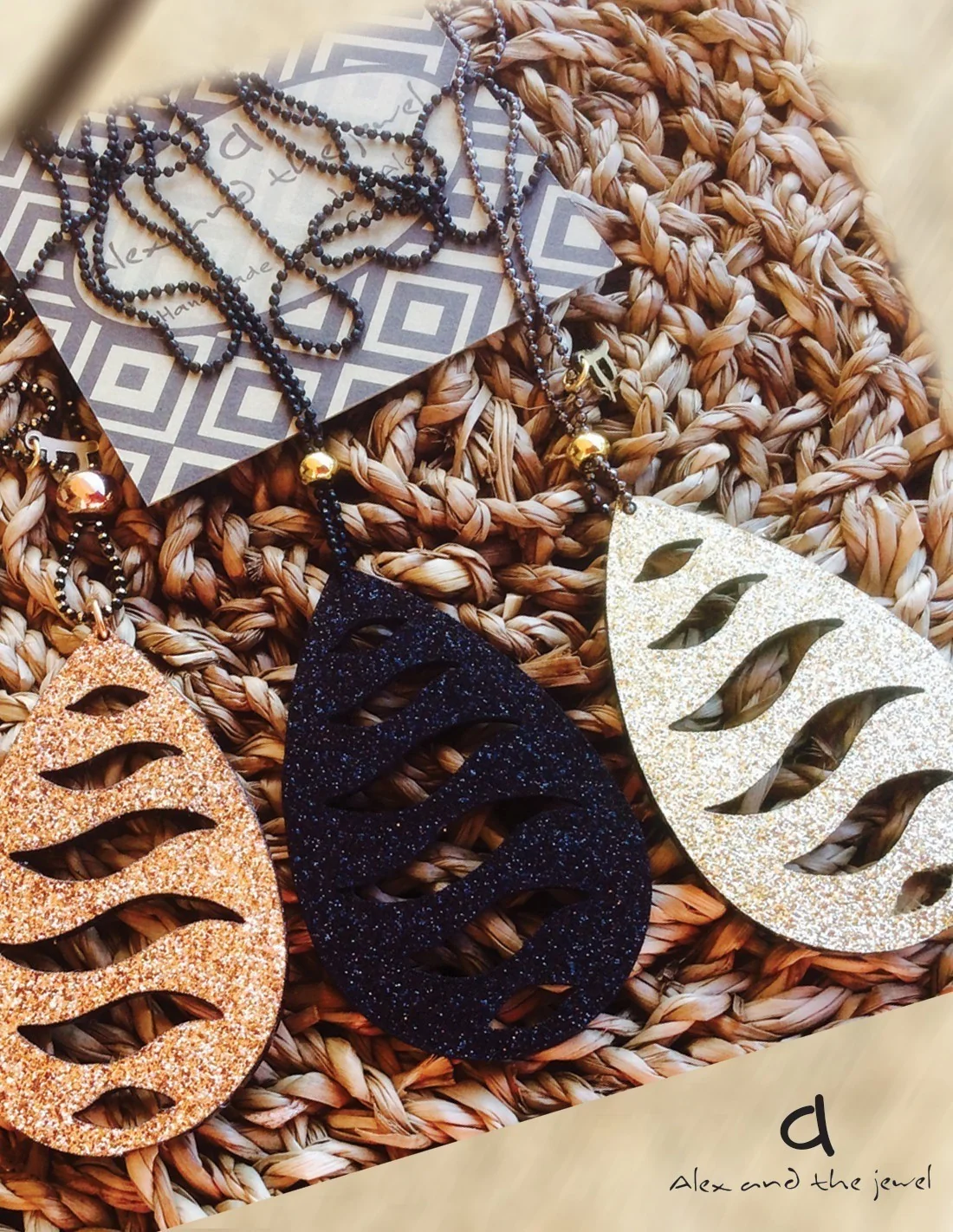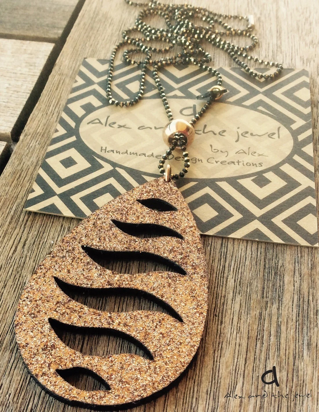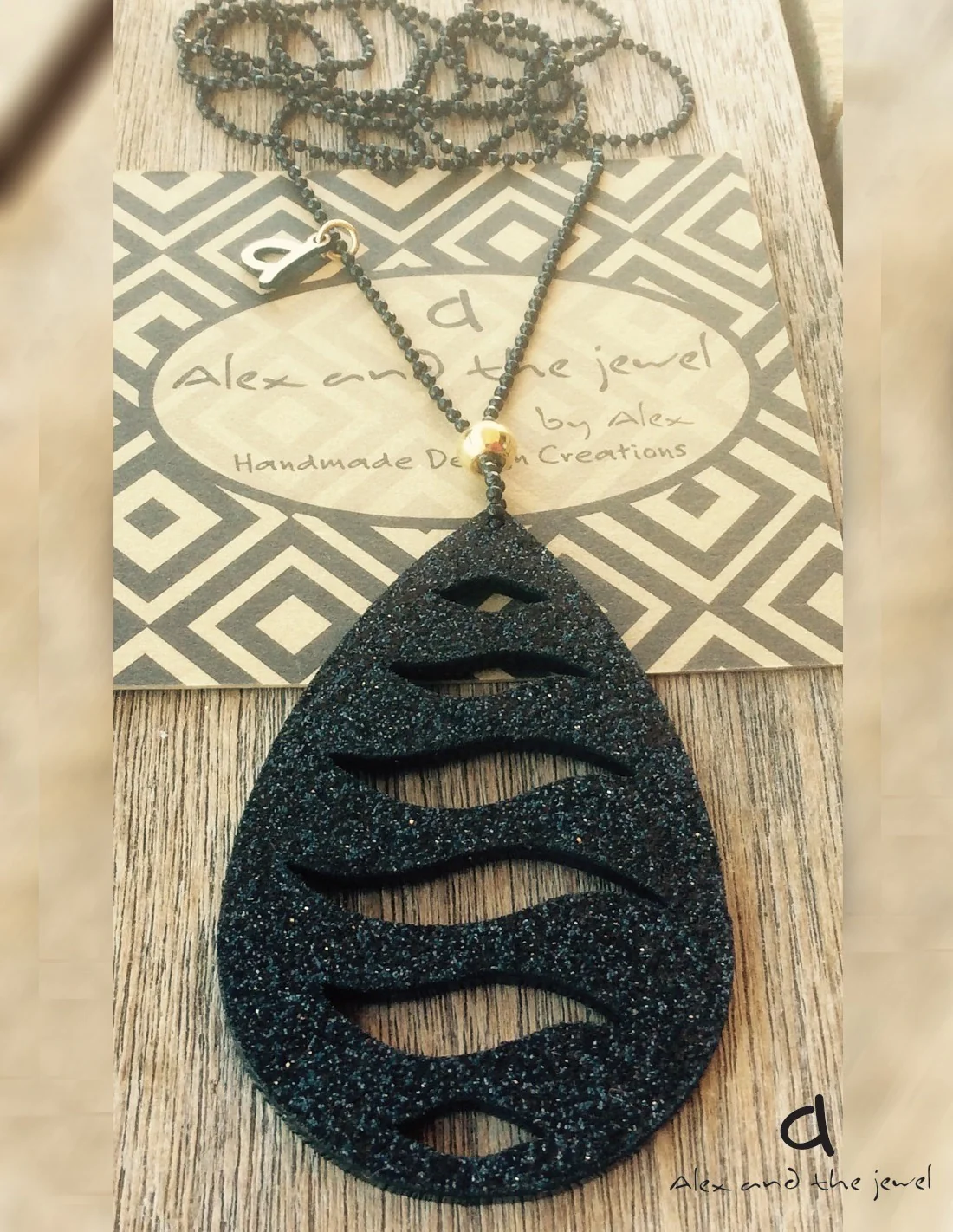 Χειροποίητο κόσμημα κολιέ με γκλίτερ σε σχήμα σταγόνας με διάτρητο σχέδιο κύματα | Alex and the jewel