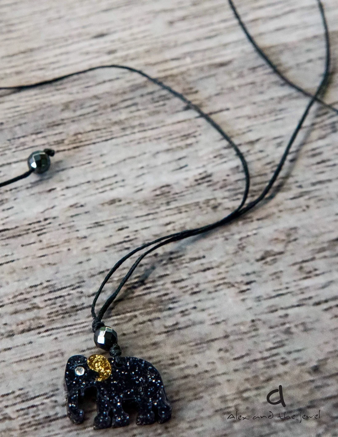 Χειροποίητο κολιέ με κρεμαστό ελεφαντάκι και ημιπολύτιμη πέτρα Αιματίτη | Alex and the jewel