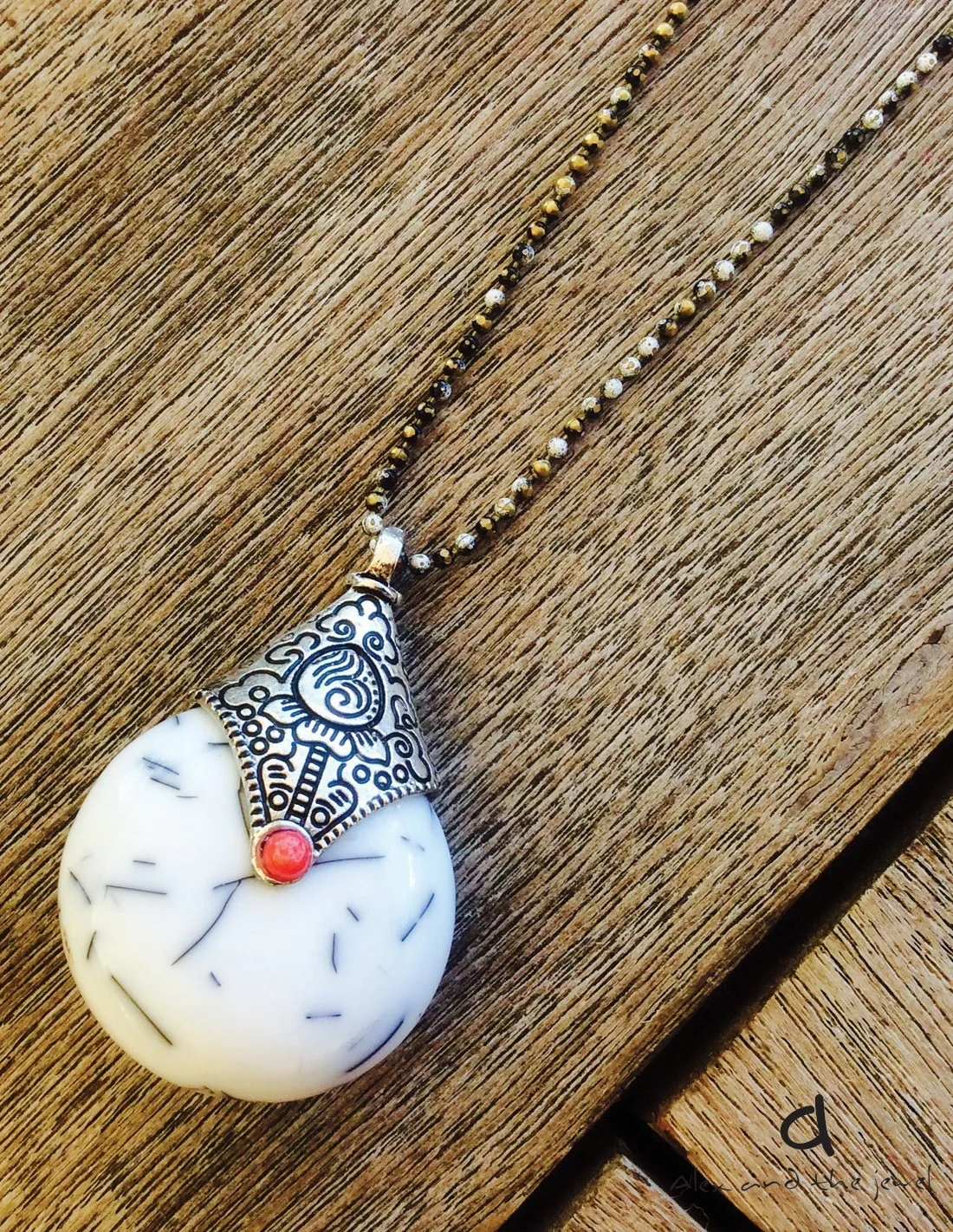 Χειροποίητο γυναικείο κόσμημα κολιέ boho με κρεμαστό στοιχείο σε λευκό ή τυρκουάζ Boho mania