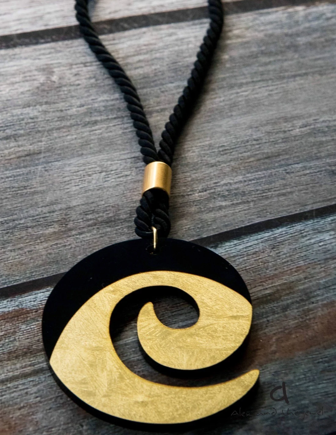 Χειροποίητο statement κολιέ με ξύλινο στοιχείο σε μαύρο και χρυσό | Alex and the jewel