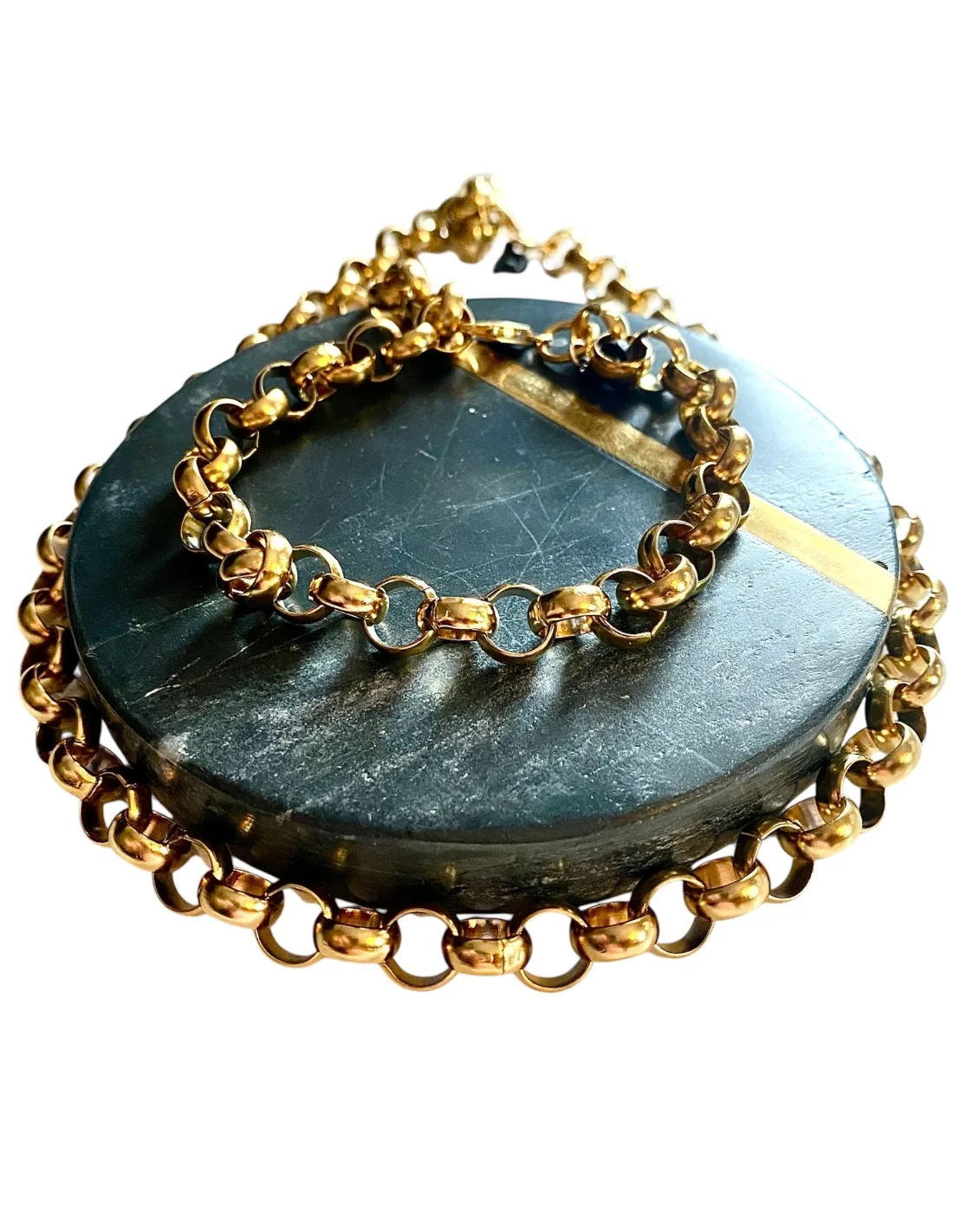 Χειροποίητο Σετ Dalida: Επίχρυση Αλυσίδα από Ατσάλι - Βραχιόλι και Κολιέ