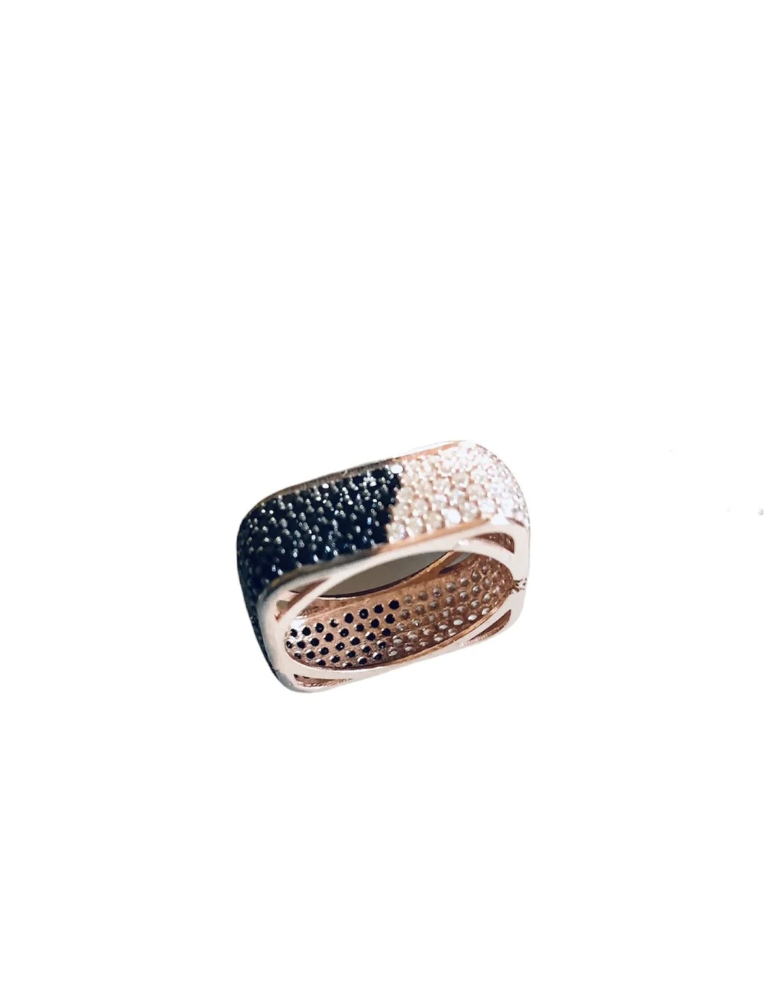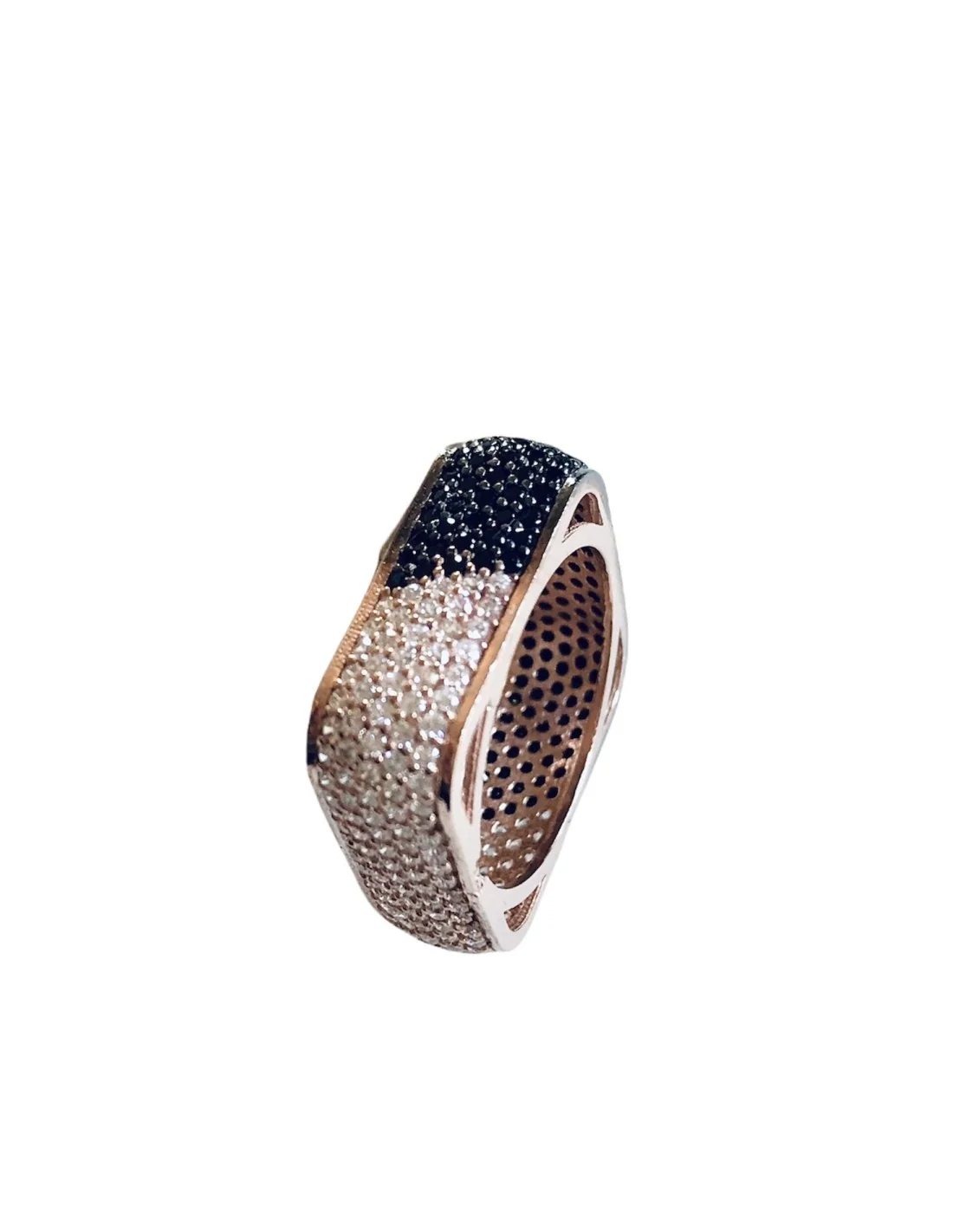 - Ζιργκόν: Το δαχτυλίδι είναι στολισμένο με ζιργκόν σε μαύρο και ροζ χρυσό, δημιουργώντας μια εντυπωσιακή αντίθεση που προσθέτει λάμψη σε κάθε σας εμφάνιση.