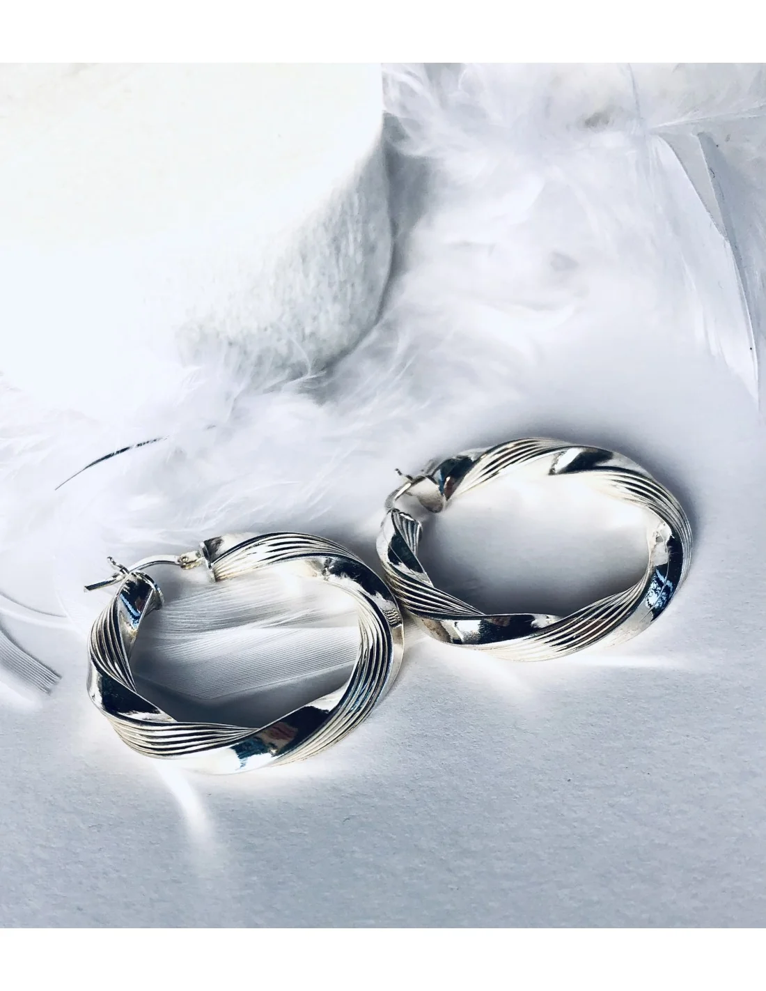 Αυτά τα σκουλαρίκια κρίκοι από ασήμι 925 σε μεσαίο μέγεθος και περίτεχνο στριφογυριστό σχέδιο αποτελούν μια κομψή και μοντέρνα επιλογή που ξεχωρίζει. Το ιδιαίτερο στριφογυριστό μοτίβο τους προσθέτει μια μοναδική υφή και λάμψη, καθιστώντας τα ιδανικά για κάθε περίσταση – από καθημερινές εμφανίσεις έως βραδινές εξόδους.