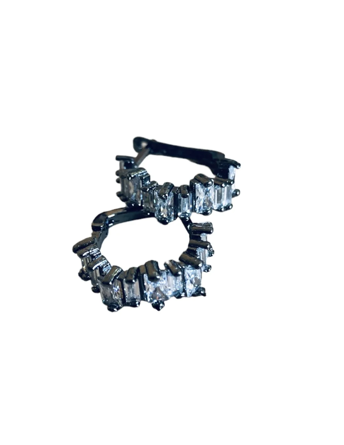 Σκουλαρίκια Ακανόνιστοι Κρίκοι από Ασήμι 925 με Διάφανα Ζιργκόν και Κούμπωμα Καρφί