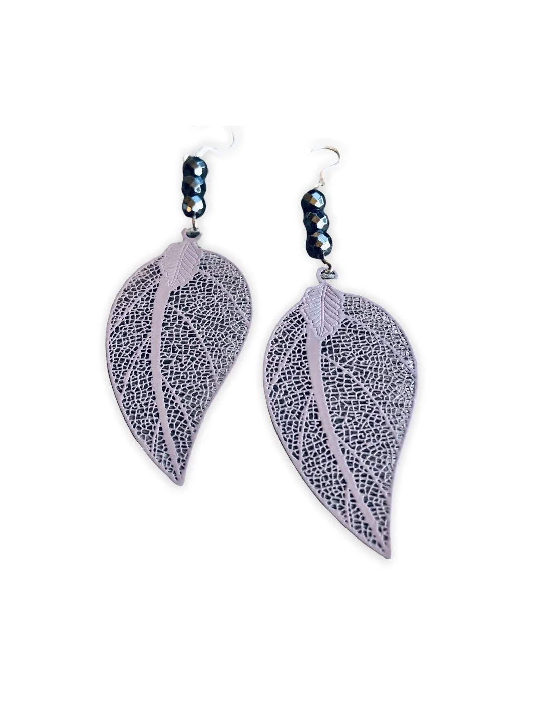 Αναδείξτε το στυλ σας με τα σκουλαρίκια Purple Shadow, ένα μοναδικό χειροποίητο κόσμημα που συνδυάζει την κομψότητα του φιλιγκρί σε γκρι μωβ απόχρωση με τη λάμψη των ημιπολύτιμων πετρών Αιματίτη. Ιδανικά για να προσθέσετε φινέτσα και λάμψη σε κάθε σας εμφάνιση.