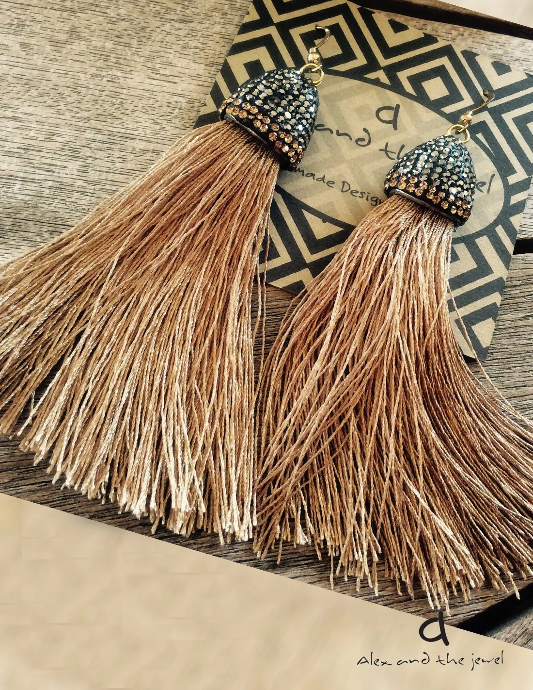 Δεν υπάρχουν άλλα προϊόντα στο καλάθι σαςΚόσμημα σκουλαρίκια με μεταξωτή φούντα σε μαύρο ή μπεζ και καπάκι πλακέ με πέτρες Μαρκασίτη με γάντζους από ασήμι 925 Dorina