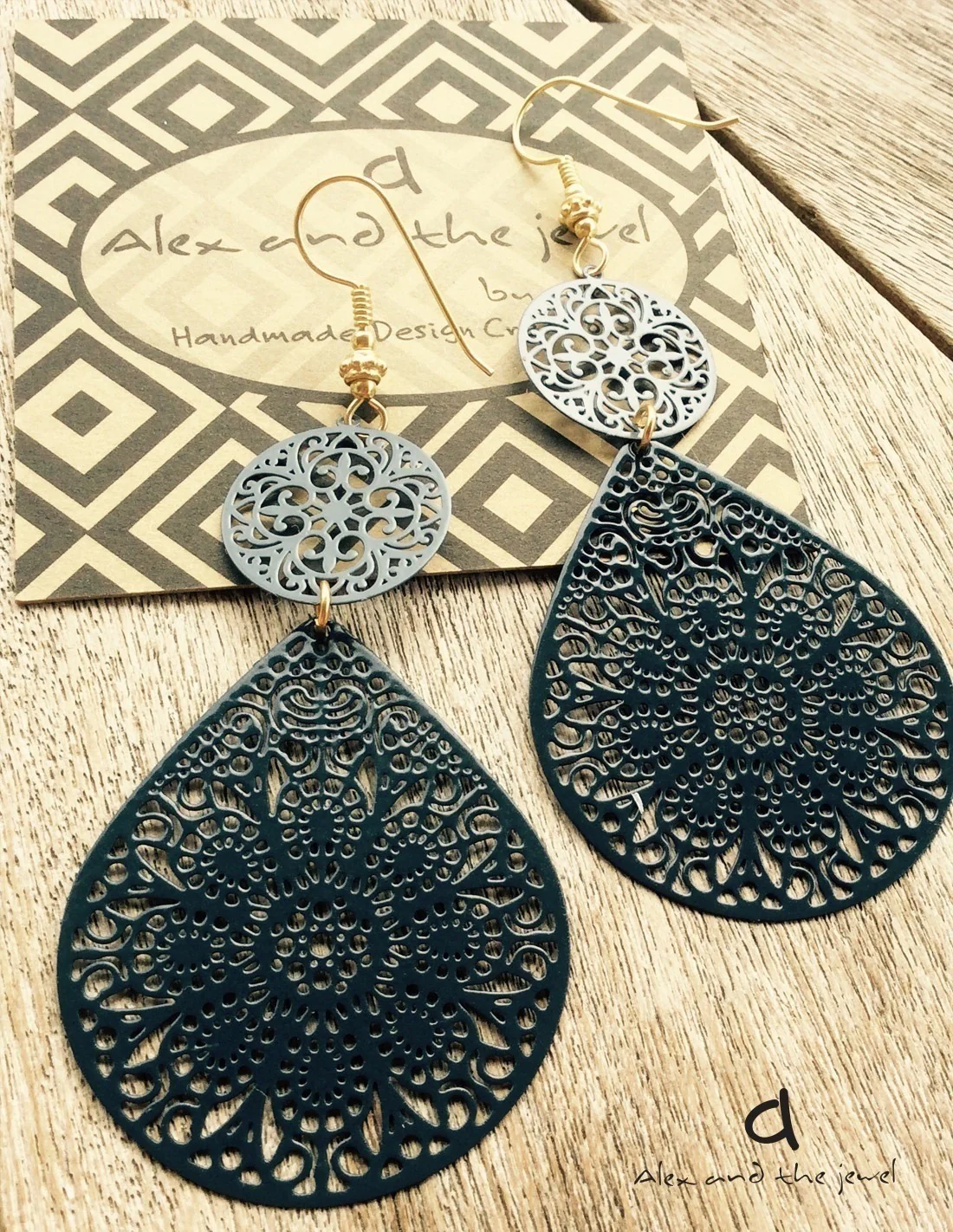 Κόσμημα σκουλαρίκια φιλιγκρί σταγόνα σε μαύρο ή ροζ χρυσό με γάντζους από ασήμι 925 Feather