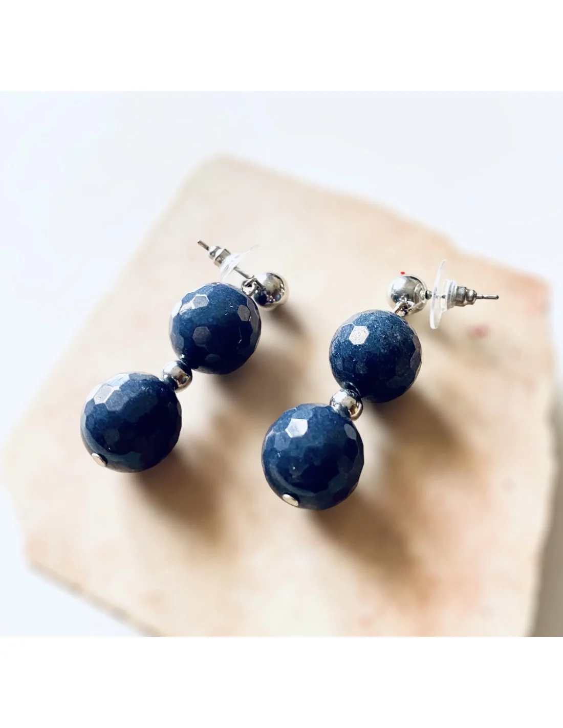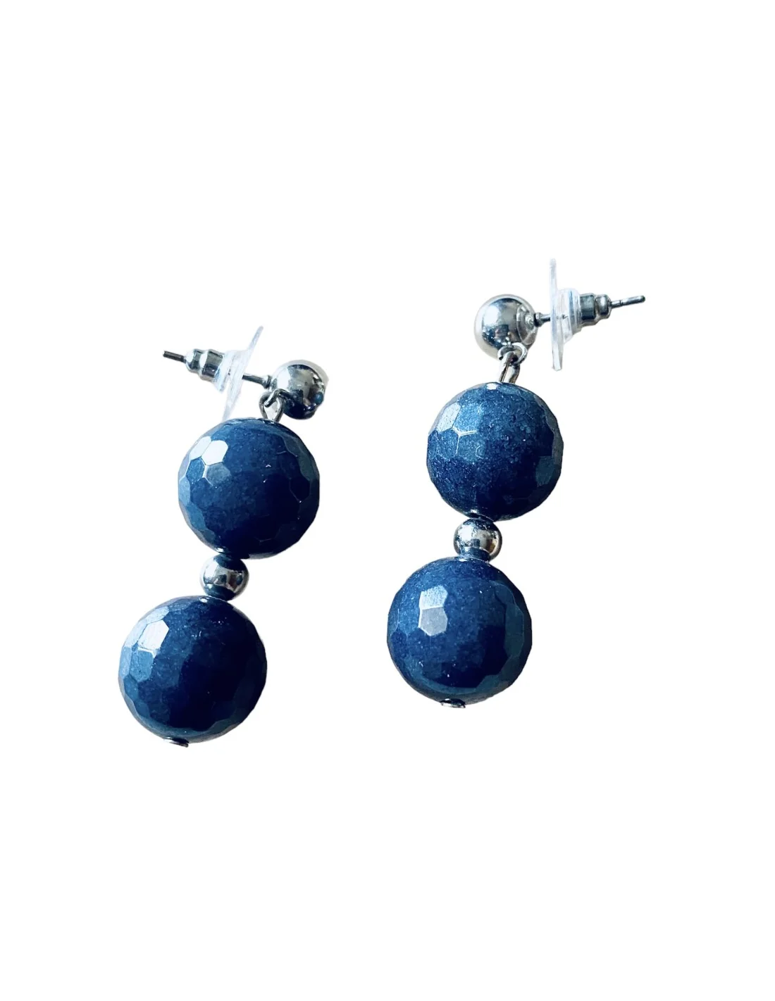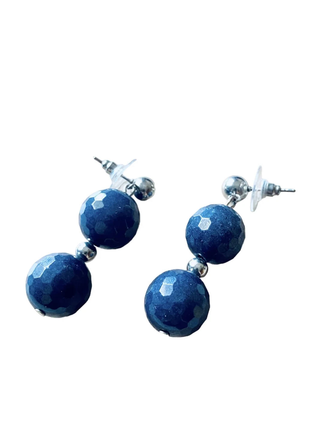 Χειροποίητα Σκουλαρίκια "Deep Blue Sea" με Αχάτη και Μπίλιες από Ατσάλι